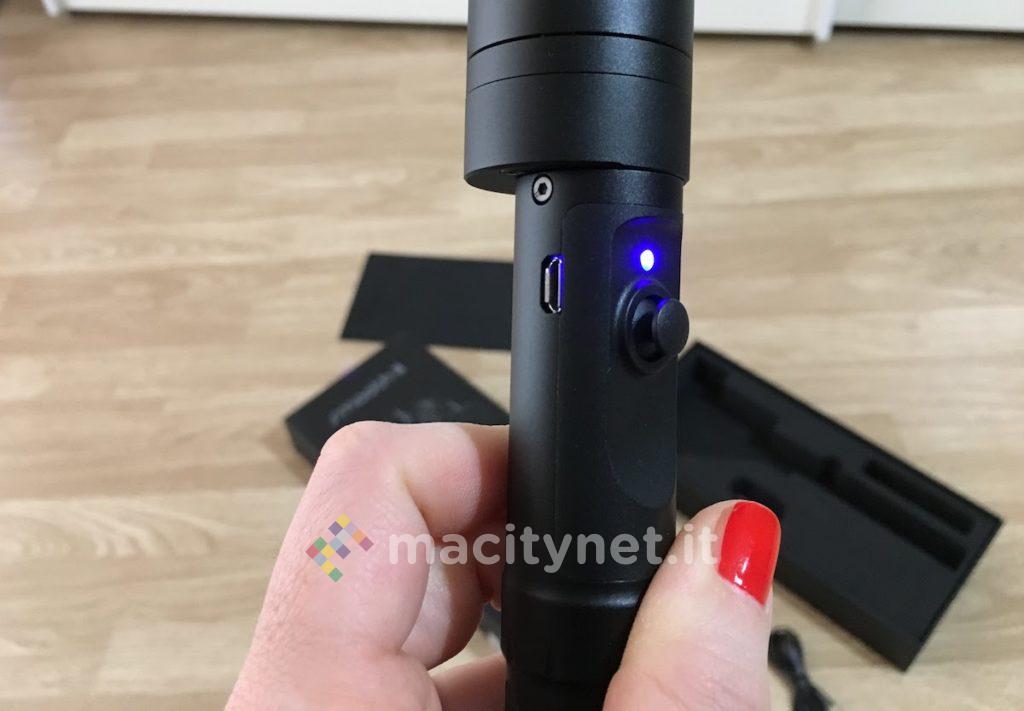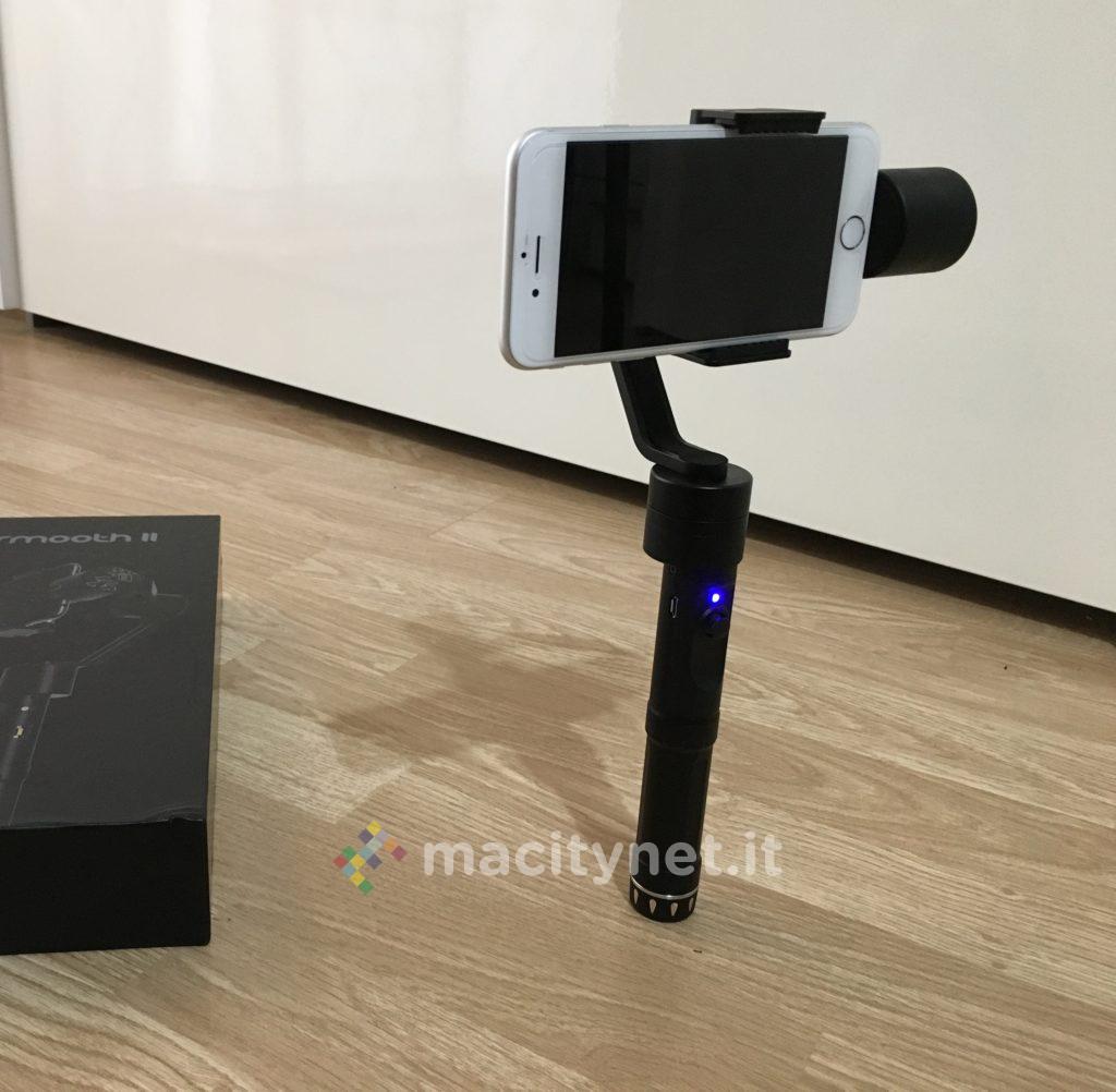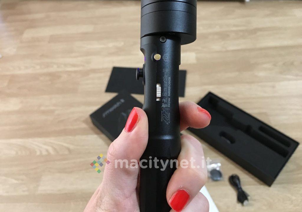 Per quanto riguarda l’autonomia, deve essere promossa a pieni voti. Anzitutto perché permette tranquillamente di arrivare a 4/5 ore di registrazione, ossia andare ben oltre la durata consentita dalla batteria di qualsiasi iPhone. Inoltre, a differenza del modello Smooth-II, sarà possibile ricaricare il gimbal anche con una power bank MicroUSB, ragion per la quale, anche in mobilità, non si rimarrà mai a secco.