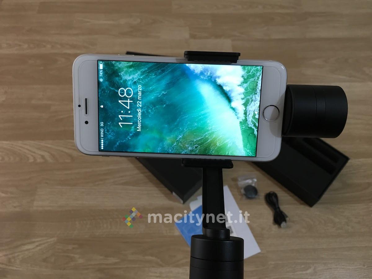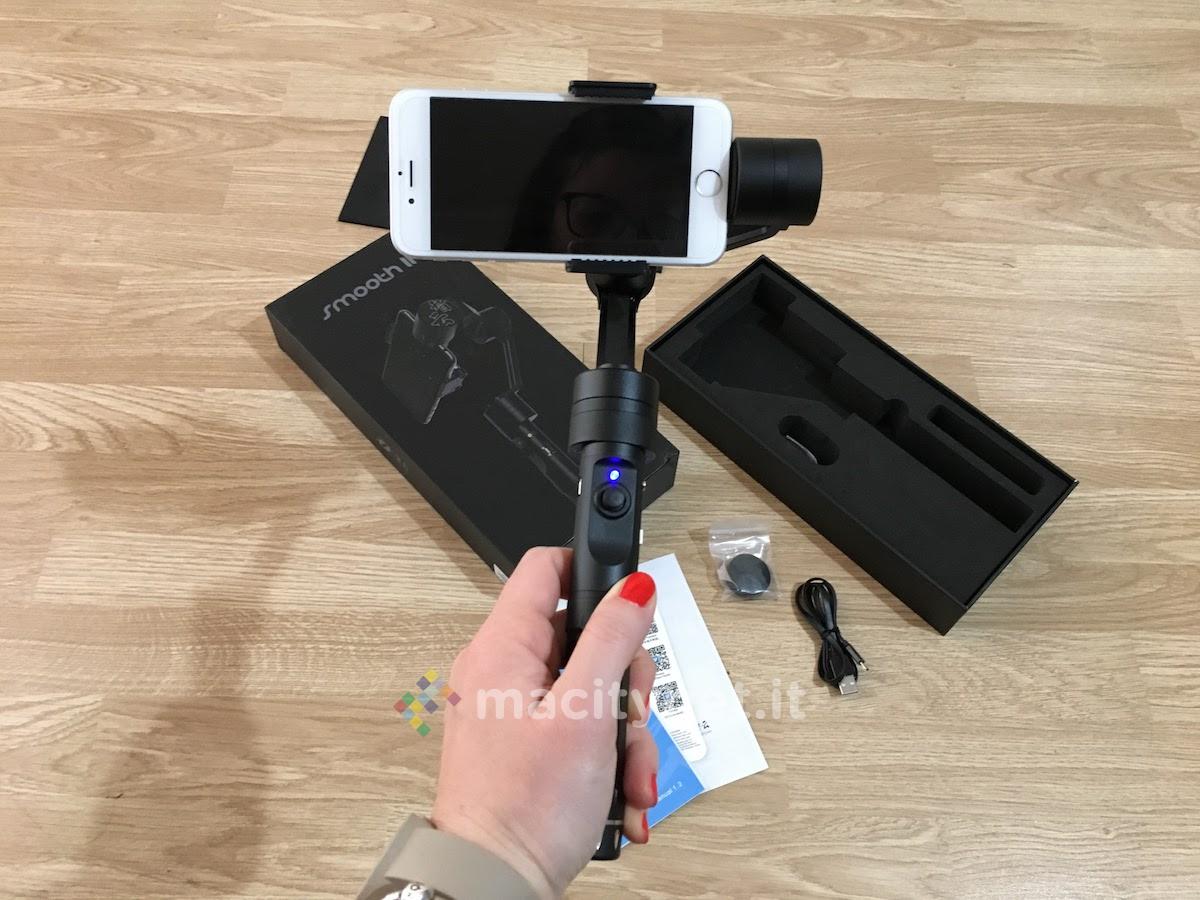Per quanto riguarda l’autonomia, deve essere promossa a pieni voti. Anzitutto perché permette tranquillamente di arrivare a 4/5 ore di registrazione, ossia andare ben oltre la durata consentita dalla batteria di qualsiasi iPhone. Inoltre, a differenza del modello Smooth-II, sarà possibile ricaricare il gimbal anche con una power bank MicroUSB, ragion per la quale, anche in mobilità, non si rimarrà mai a secco.