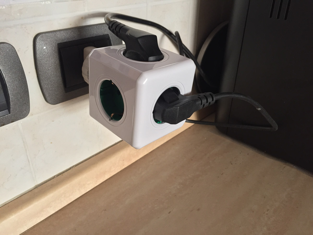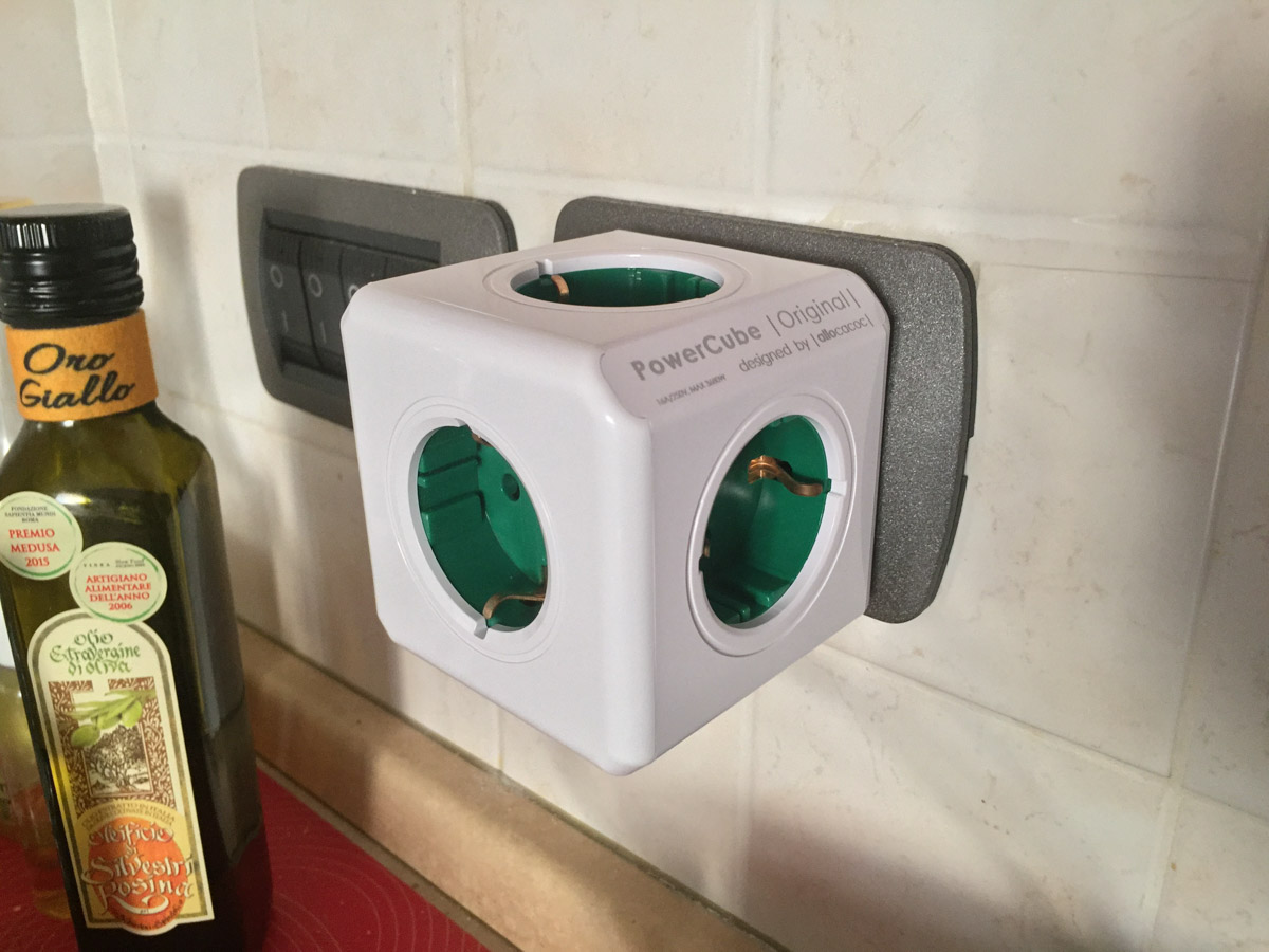 Certamente il numero di porte a disposizione (cinque) supera di gran lunga qualsiasi altro sistema visto che, oltre le tre prese, di norma è necessario acquistare una ciabatta elettrica ed i cui ingombri sono chiaramente superiori a quelli del cubo. Per di più la maggiore sporgenza, combinata al peso delle spine collegate, tende a far sì che il cubo per gravità si inclini con il rischio che alla lunga possa perfino sganciarsi.