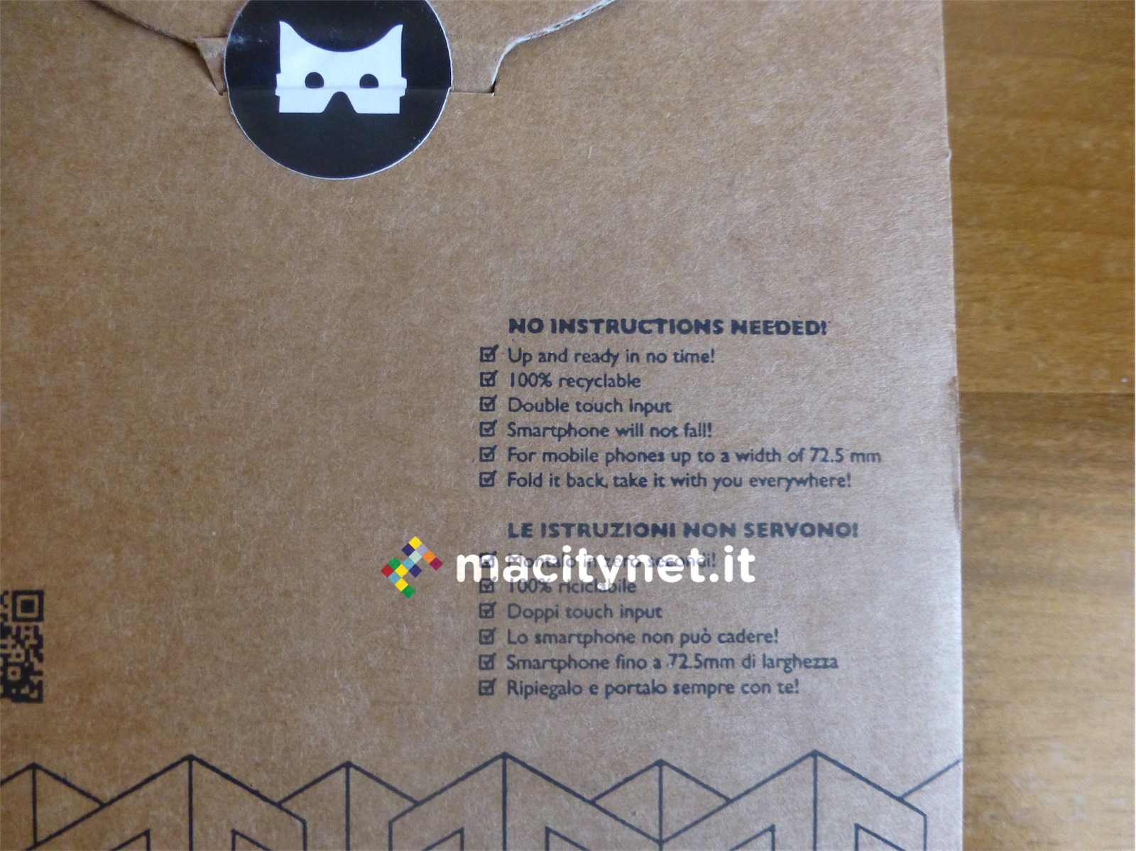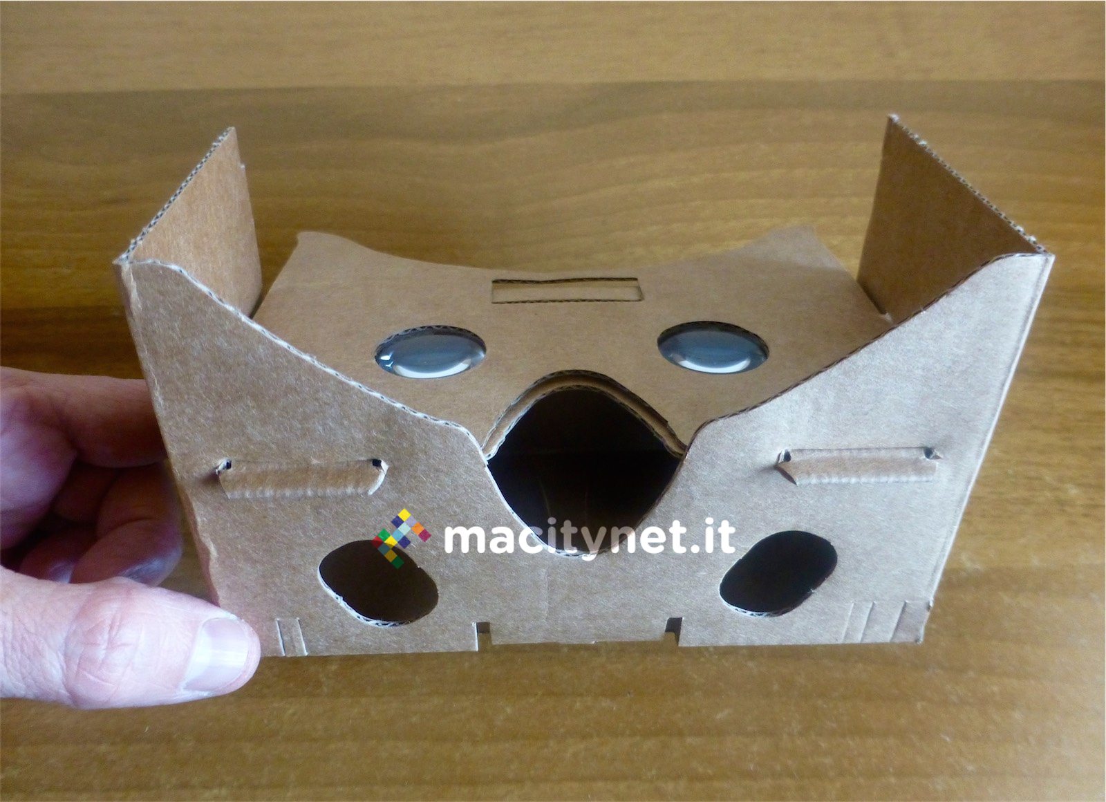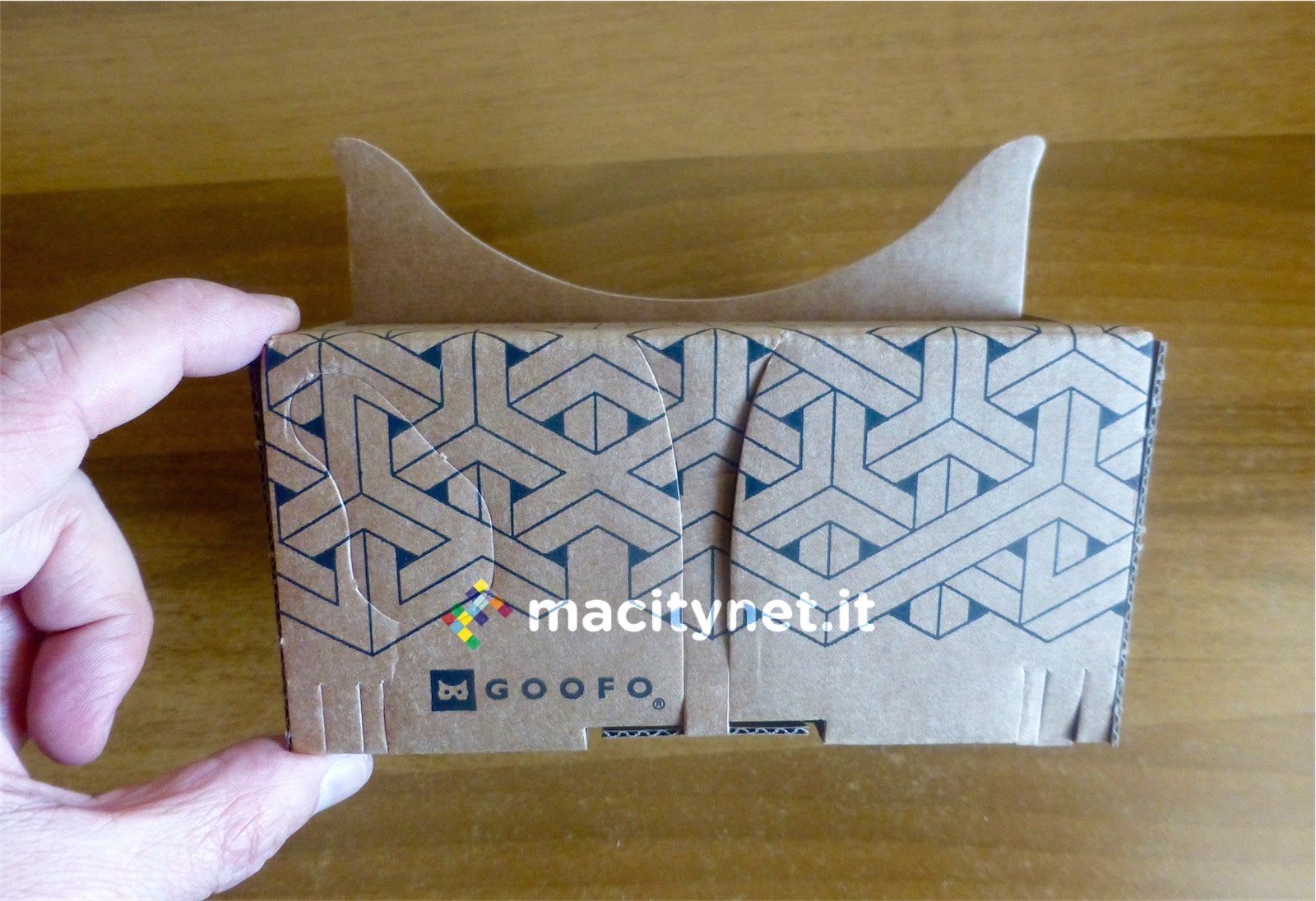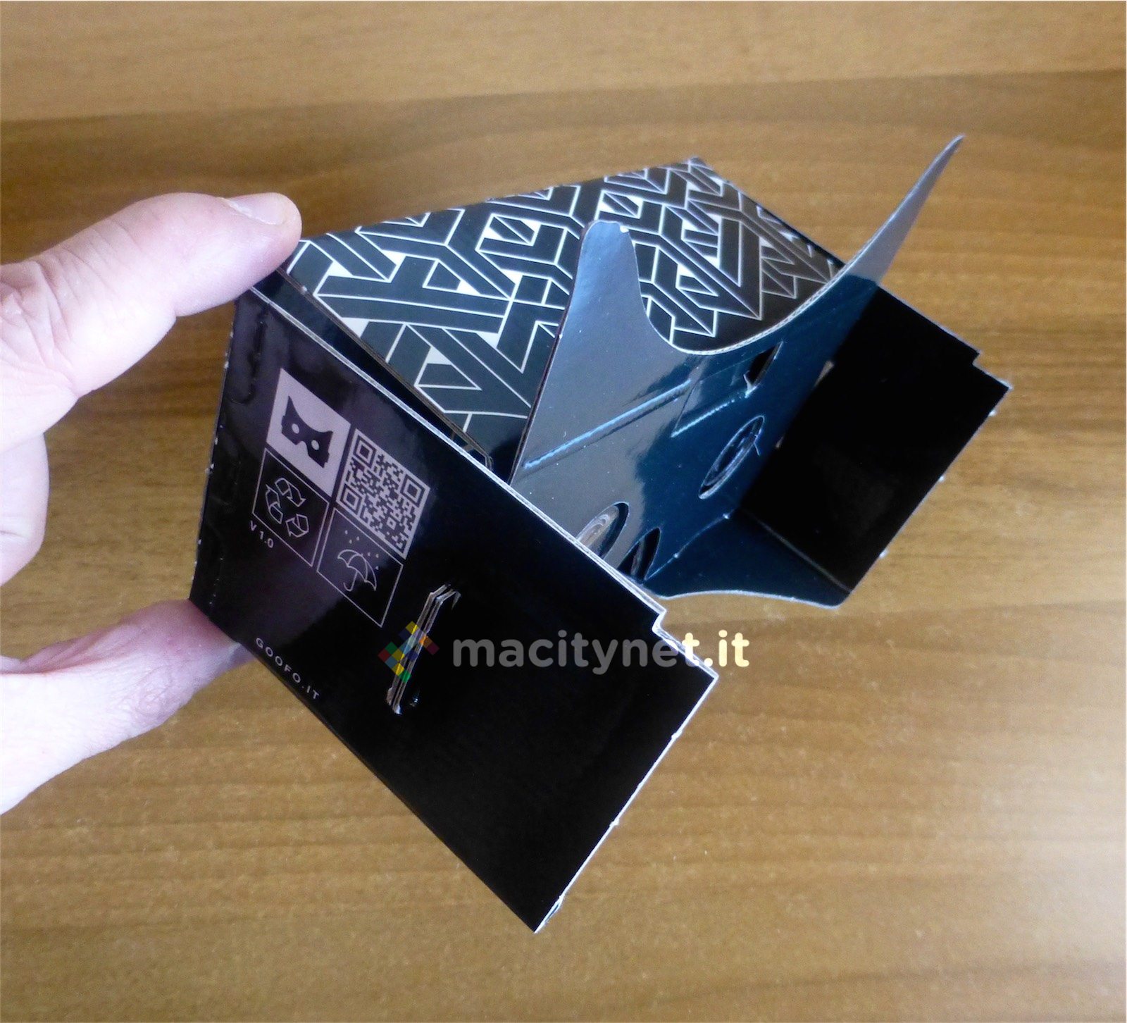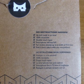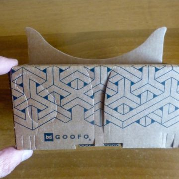 Ma di Goofo abbiamo apprezzato anche la possibilità di essere ripiegato, riposto e trasportato con facilità, per poi essere riutilizzato ovunque altrettanto rapidamente. Questo permette a chi lo desidera di avere sempre con sé il visore oltre che di farlo provare ad amici e parenti portandolo con sé a cene, all’aperto e dovunque capiti. Pur essendo piuttosto robusto e resistente Goofo è costruito in cartone: l’unica preoccupazione circa la possibilità di essere piegato e ripiegato più volte è che con il tempo e l’usura potrebbe sgualcirsi, ma anche qui con un po’ di nastro adesivo dovrebbe essere possibile risolvere la maggior parte dei problemi.