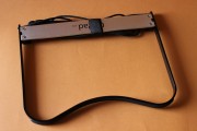 La cinghia che va posizionata dietro al collo durante l’utilizzo è regolabile per mezzo di due fermi in plastica a pulsante e, grazie alla borsa in morbida stoffa sintetica è possibile sfruttare il sistema anche per il trasporto a spalla, assicurando la borsa al tablet attraverso due ganci a bottone.