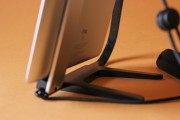 Comodo tanto per dare uno sguardo alla mappa quanto per navigare in internet, rispondere ad una mail oppure scrivere un lungo testo. Il sistema risulta stabile sia da fermi, sia mentre si cammina, ed aiuta a tenere il tablet alla giusta distanza ed inclinazione anche se ci si siede più comodamente su un divano. I morsetti in plastica possono essere ruotati di 360 gradi così da sfruttare la staffa che solitamente va ad appoggiarsi sul corpo, come cavalletto per l’utilizzo su una superficie piana. Se invece si vuole mantenere il tablet in verticale, incluso nella confezione c’è un piccolo accessorio in plastica che si aggancia ad uno dei due lati del manico in alluminio fungendo da pratico stand.