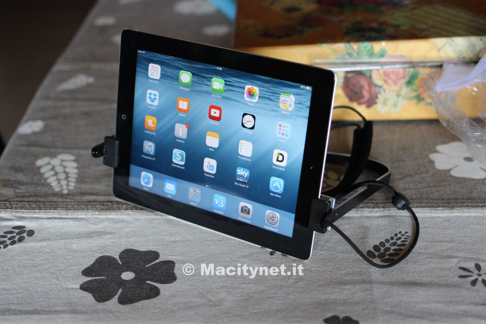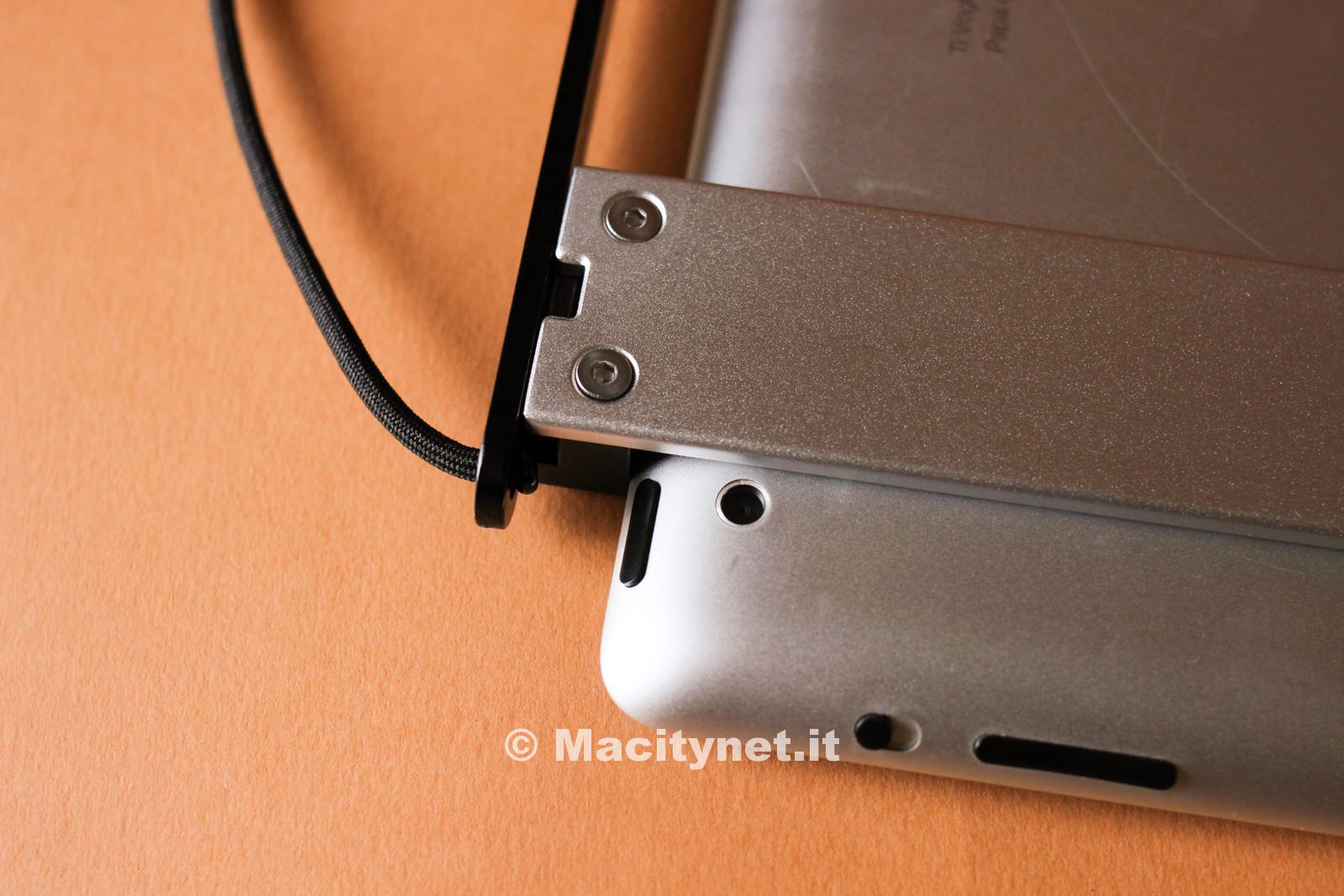 - L’iPad Air è troppo sottile per essere agganciato, a meno che non si aumenta lo spessore con una cover posteriore