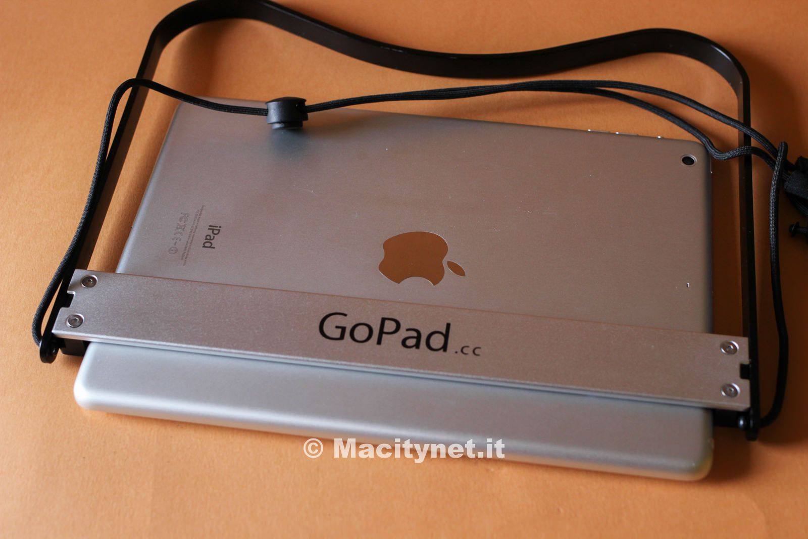 Sebbene proteggere l’iPad da urti e graffi è importante, ancora più utile in questi casi è un accessorio che ci permette di utilizzarlo in tutta sicurezza e magari senza avere le mani impegnate per troppo tempo. Immaginando ad esempio una vacanza, sarebbe molto più comodo sorreggere u’iPad mentre magari si è impegnati a digitare sul tablet con entrambe le mani, o magari scattare una foto con l’iPhone mentre si ha sotto mano la cartina sull’iPad. Il GoPad che abbiamo avuto modo di provare nelle scorse settimane è un sistema che esaudisce proprio questi desideri ma che al contempo non farà rinunciare a protezione, portabilità ed all’occorrenza alla funzione di stand già apprezzata con le classiche custodie per iPad.