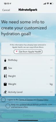 L’applicazione Hidrate è il vero fulcro di HidrateSpark 3 Steel. È questo programma a misurare, sulla base dei parametri che avremo immesso, la quantità di liquido che dovremo bere nell’arco della giornata e a quali intervalli. Il sensore misurerà la quantità d’acqua (o altra bevanda, ma le alternative non sono molte: essenzialmente bevande per ripristinare il livello salino) sorseggiata e presenterà il totale progressivo via via; per far calcolare il totale basterà appoggiare per una decina di secondi la borraccia su una superficie piana. A quel punto HidrateSpark 3 Steel misurerà il peso del liquido residuo e saprà quanto abbiamo bevuto e quanto ci resta da bene nel corso della giornata. Quando l’acqua sarà finita, basterà riempire la borraccia fino al bordo e ricominciare.