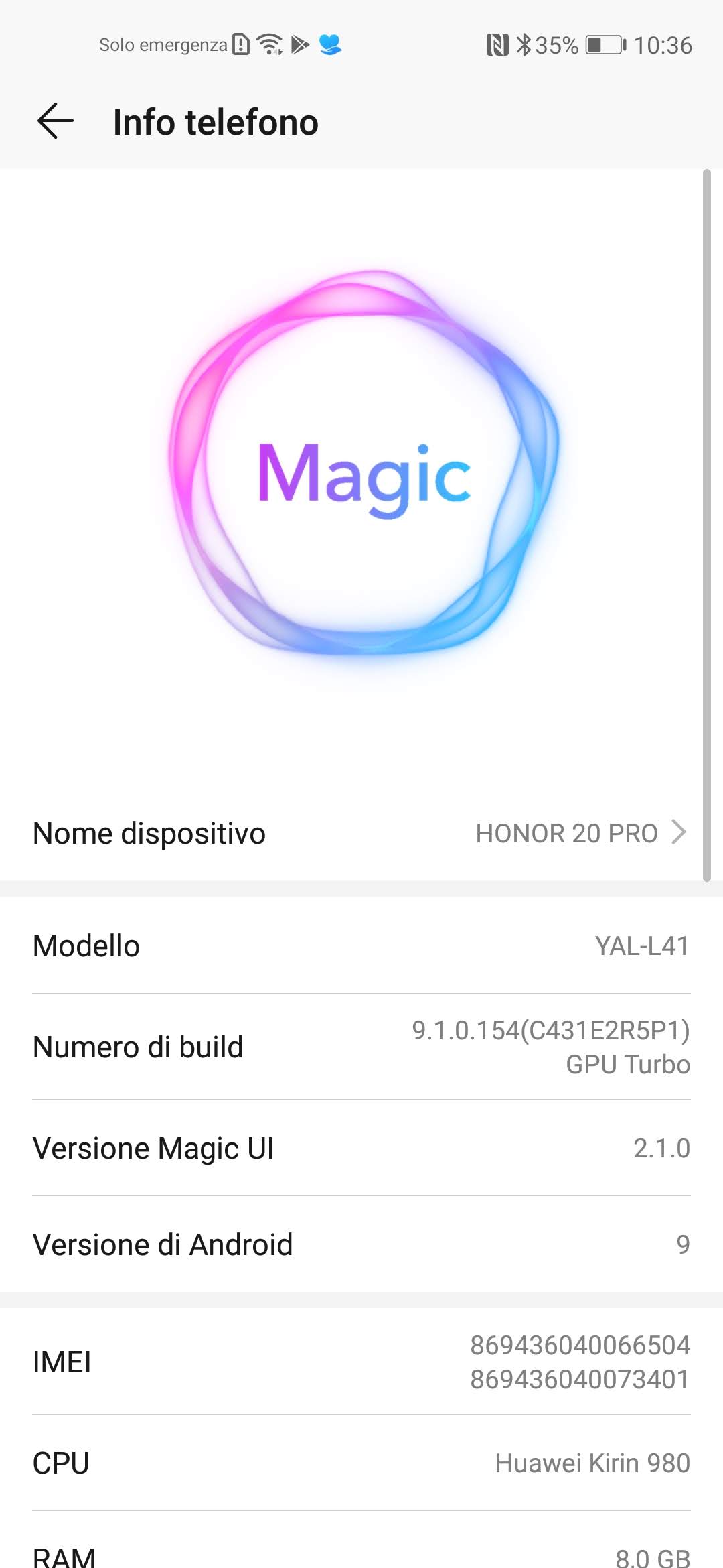 Quando si parla di smartphone Huawei e Honor è importante subito rispondere ad una domanda: offrono le app Google, o no? Questo Honor 20 Pro arriva a casa con tutte le applicazioni di Google pre installate, e con tutti i servizi Google perfettamente funzionanti. A bordo è presente la Honor Magic UI 2.1.0, basata su Android 9. Peraltro, il terminale appartiene a quella lista di terminali del brand che riceveranno Android 10 e la nuova versione di EMUI.