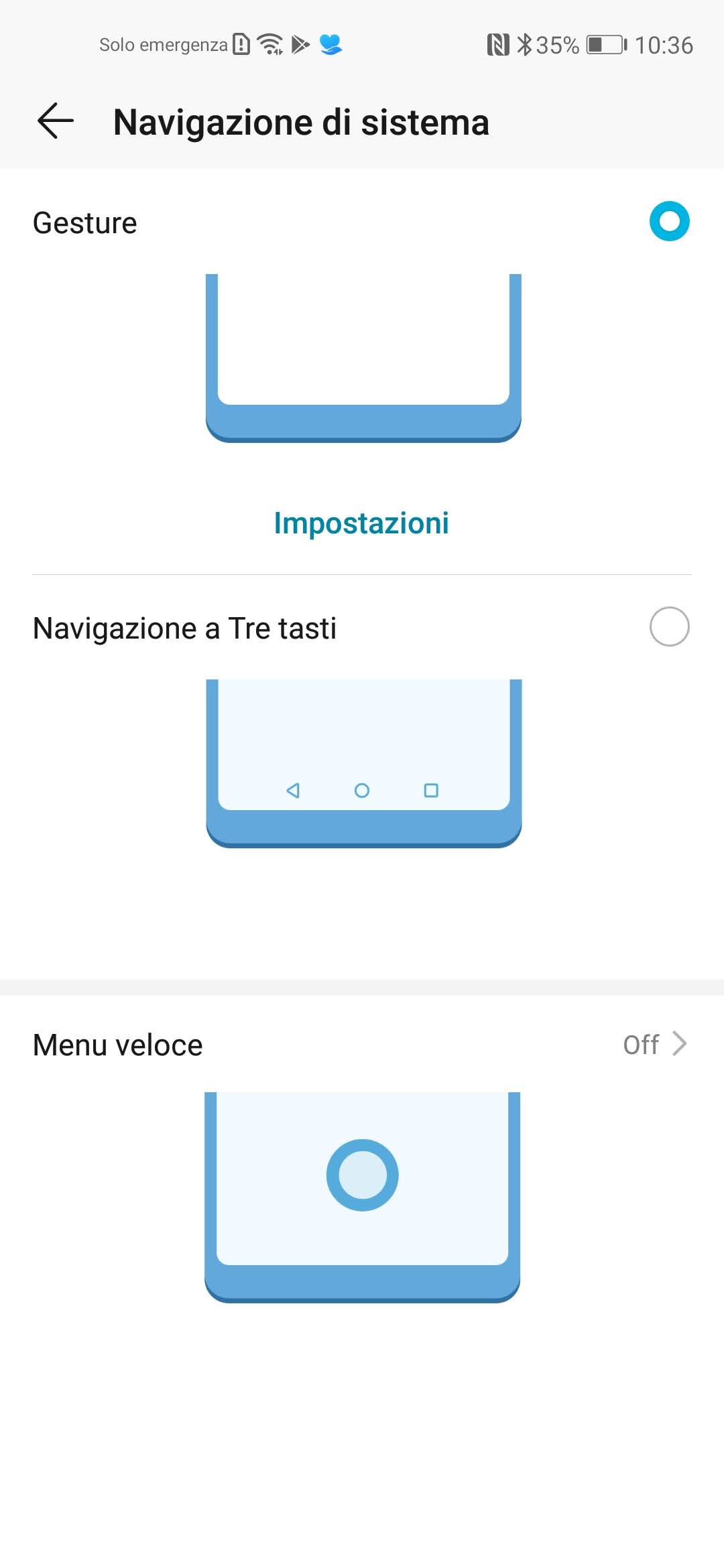Come sempre, la Honor Magic, enucleata dalla EMUI, non rappresenta la “skin” Android più raffinata, più minimale o moderna, anche se ultimamente è stata affinata per non risultare più “pesante” come la precedente. Apprezzaimo particolarmente, ad esempio, la possibilità di utilizzo ad una mano, anche quando è attiva la gestione UI tramite gesture. Per attivare la modalità One Hand sarà sufficiente uno slide trasversale partendo dagli angoli inferiori dello schermo verso il centro.