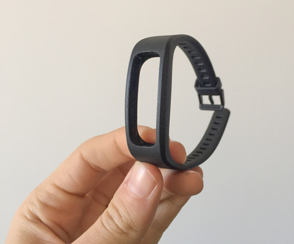 Il cinturino è piuttosto flessibile sebbene nei primi giorni risulterà un pelino rigido. Con il passare dei giorni il silicone si ammorbidirà prendendo la forma del polso di chi lo indossa. Anziché bloccarsi nei fori con uno o due pin come già visto fare con cinturini simili, utilizza la classica fibbia in plastica, che a nostro giudizio appare molto più comoda e precisa nella regolazione. Ottima scelta quella di accostargli una clip che si blocca nei fori del cinturino e consente di mantenere ben salda al polso la porzione di cinturino in eccesso per i polsi più sottili.