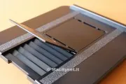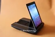 L’accessorio arriva a casa in pochi giorni dall’acquisto e con esso, nel caso si optasse per la versione completa, è compreso nel prezzo il Prop’n Go, un comodo e leggero (appena 400 grammi) tavolino da letto per smartphone e tablet che permette di mantenere il dispositivo inclinato mentre lo si appoggia sul letto di lato oppure sopra le gambe, perfetto per la visione di un film o una telefonata in FaceTime. Questo comodo accessorio è abbastanza grande ( 25,5 x 26,5 x 2,5-3,5 centimetri) per poter sostenere tranquillamente qualsiasi smartphone e tablet, noi lo abbiamo provato sia con iPhone 6 Plus sia con il più grande e pesante iPad 2 senza alcun cedimento: ciò è garantito dalle due bande gommate che trattengono fermo il dispositivo quando appoggiato, anche se si tratta di un iPad pesante senza custodia, quindi con l’alluminio scivoloso a contatto con la base: su quest’ultima è inoltre presente una sporgenza (1 centimetro) sulla quale si appoggia il dispositivo, sia in posizione orizzontale, sia in verticale.