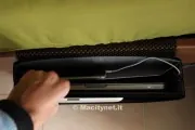 Il punto di forza di questo particolare accessorio è la tasca più piccola, quella da aprire all’occorrenza di notte: chiusa da un magnete quando non utilizzata, si apre a “V” proprio sopra la tasca principale e permette di alloggiare l’iPhone, un paio di occhiali da vista e poco altro. In uno dei momenti migliori per il test ma peggiori per chi scrive in quanto colpito da un tremendo raffreddore, nel comparto hanno trovato posto l’iPhone 6 Plus insieme ad un pacchetto di fazzoletti, caramelle e spray per la gola: durante quel periodo gli occhiali li abbiamo appesi di lato, mentre sulla tasca principale abbiamo inserito il MacBook Pro e l’iPad 2, lasciando il Prop’n Go sulla tasca esterna.