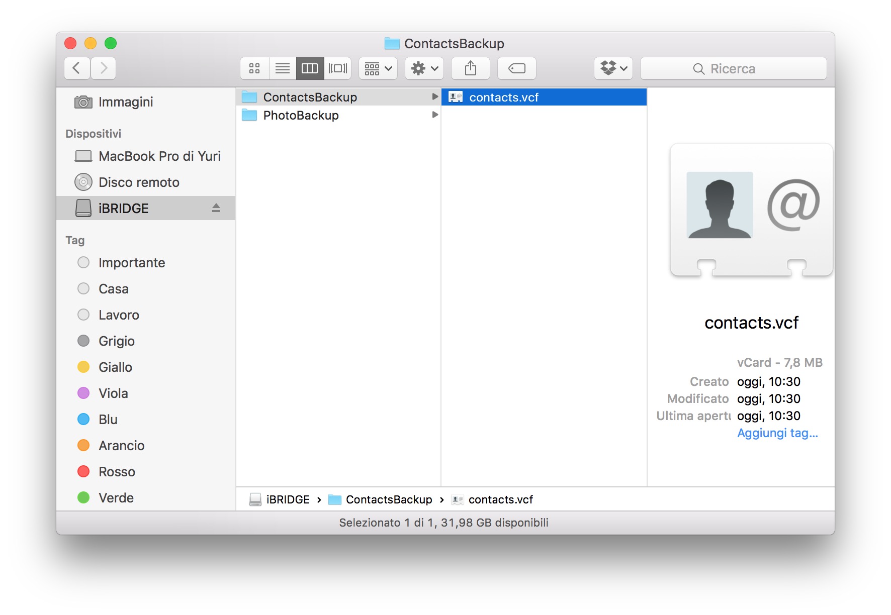 Velocizza anche il trasferimento di foto e video su un computer, specialmente chi ha un nuovo iPhone 6s o Plus e registra spesso video in 4K. Con iBridge è possibile copiarli sulla chiavetta e trasferirli su un computer con il metodo classico, dimenticando iTunes o altri software e lasciando il cavo Lightning a casa.