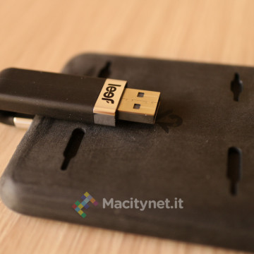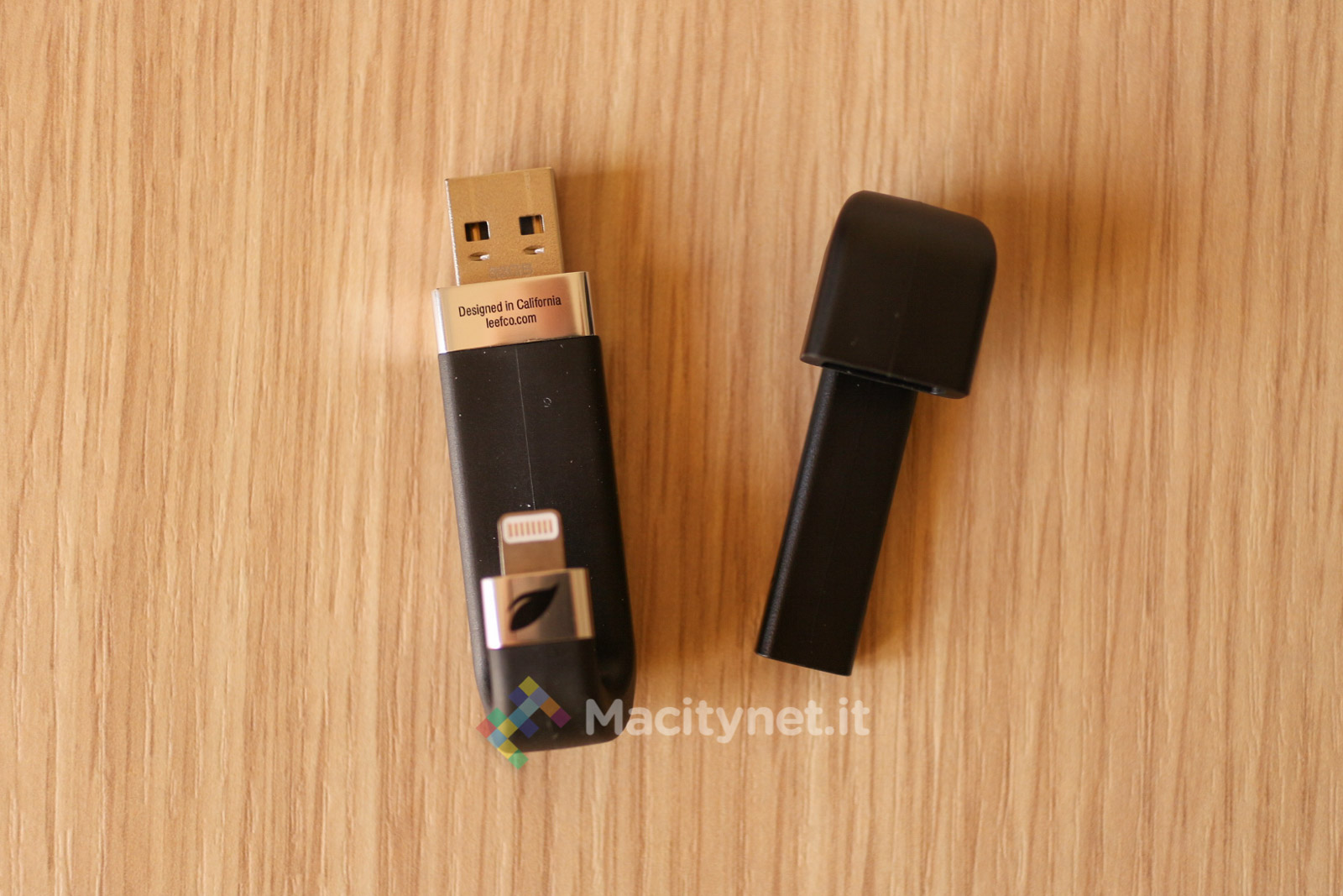 La chiavetta è accompagnata da un tappo che protegge entrambi i connettori quando non sono in uso. Una scelta che abbiamo apprezzato fin da subito in quanto eravamo già abituati ad utilizzare un accessorio simile grazie all’iAccess di Leef, un lettore di microSD per iOS che ci accompagna quotidianamente ormai da qualche mese (qui la nostra recensione). Rispetto a quest’ultimo, iBridge ha una forma più allungata, è più “pesante” (10 grammi contro i 2 grammi dell’iAccess), ed è caratterizzata da materiali di migliore fattura.