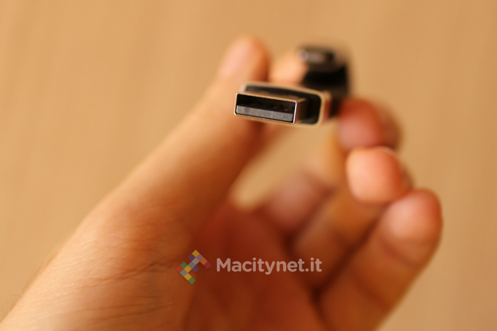 Mentre il cappuccio è in leggera plastica di buona qualità, la chiavetta è di plastica più robusta, con copertura gommata che la rende ancora più apprezzabile al tatto e le giunture sono rivestite in metallo, una scelta che conferisce un look premium all’intero prodotto.