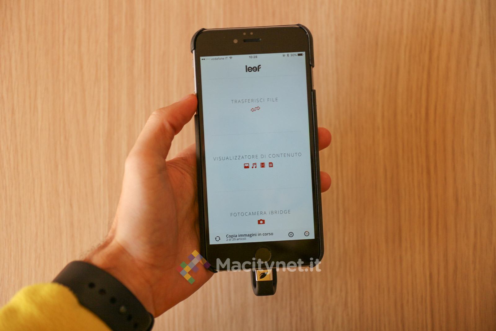L’app è molto semplice, è caratterizzata da un’interfaccia grafica in pieno stile iOS 9 ed offre rapido accesso a quattro distinte funzioni. Con TRASFERISCI FILE si inviano le immagini contenute nel rullino foto alla chiavetta collegata o viceversa; attraverso VISUALIZZATORE DI CONTENUTO è invece possibile dare un’occhiata a tutti i file presenti nella chiavetta o all’interno dell’app e raggruppate per tipologia (Foto, Musica, Film, Documenti). Da qui è anche possibile copiare o spostare uno più file sulla memoria del telefono: in questo modo si può svuotare la chiavetta copiando i file nel telefono o viceversa.