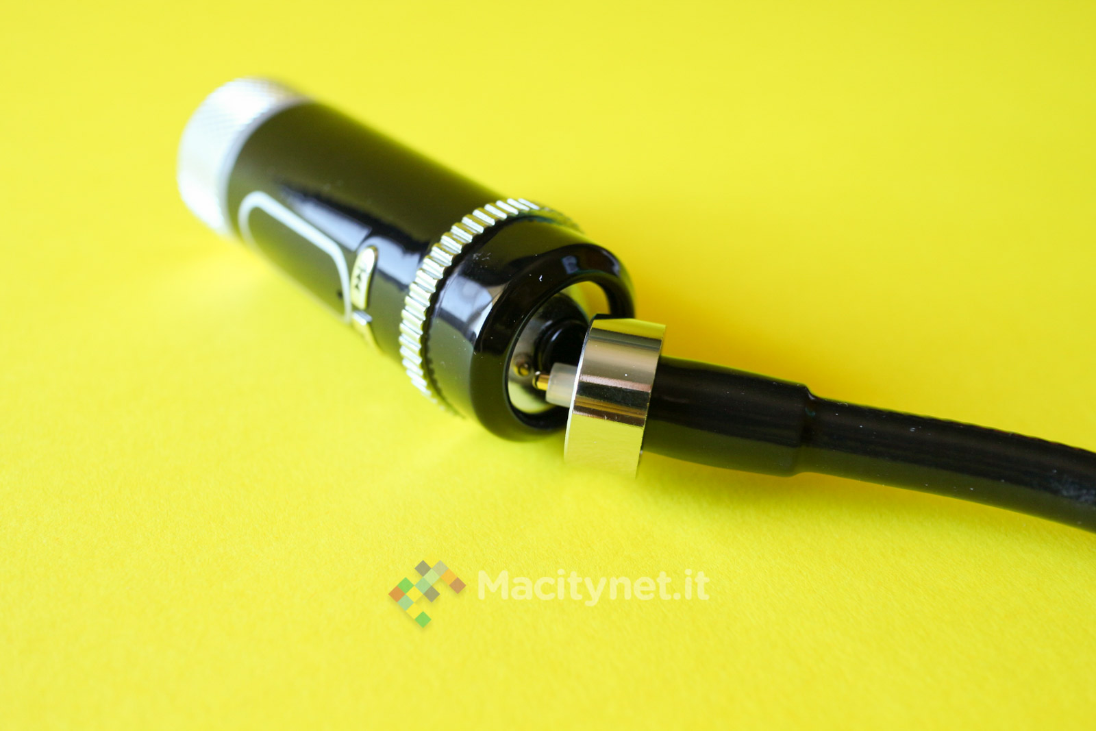 Il magnete è una scelta intelligente che permette di ruotare di 360 gradi la parte superiore orientando il display verso il guidatore o chi, in quel momento (esempio un passeggero) sta regolando la radio. In più permette di smontare l’accessorio quando non utilizzato, occupando poco spazio magari nel vano portaoggetti: la connessione è abbastanza forte, così come è solida la flessibilità del braccio in metallo che può essere flesso ed orientato in base alle proprie esigenze.