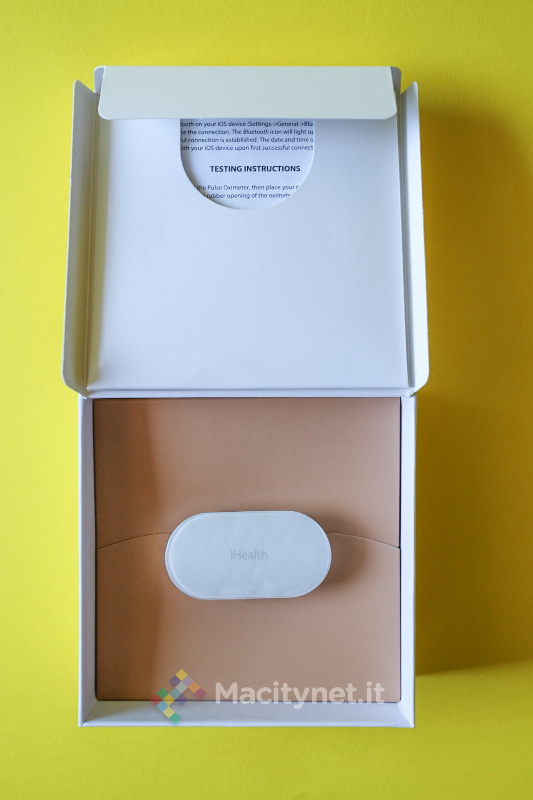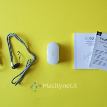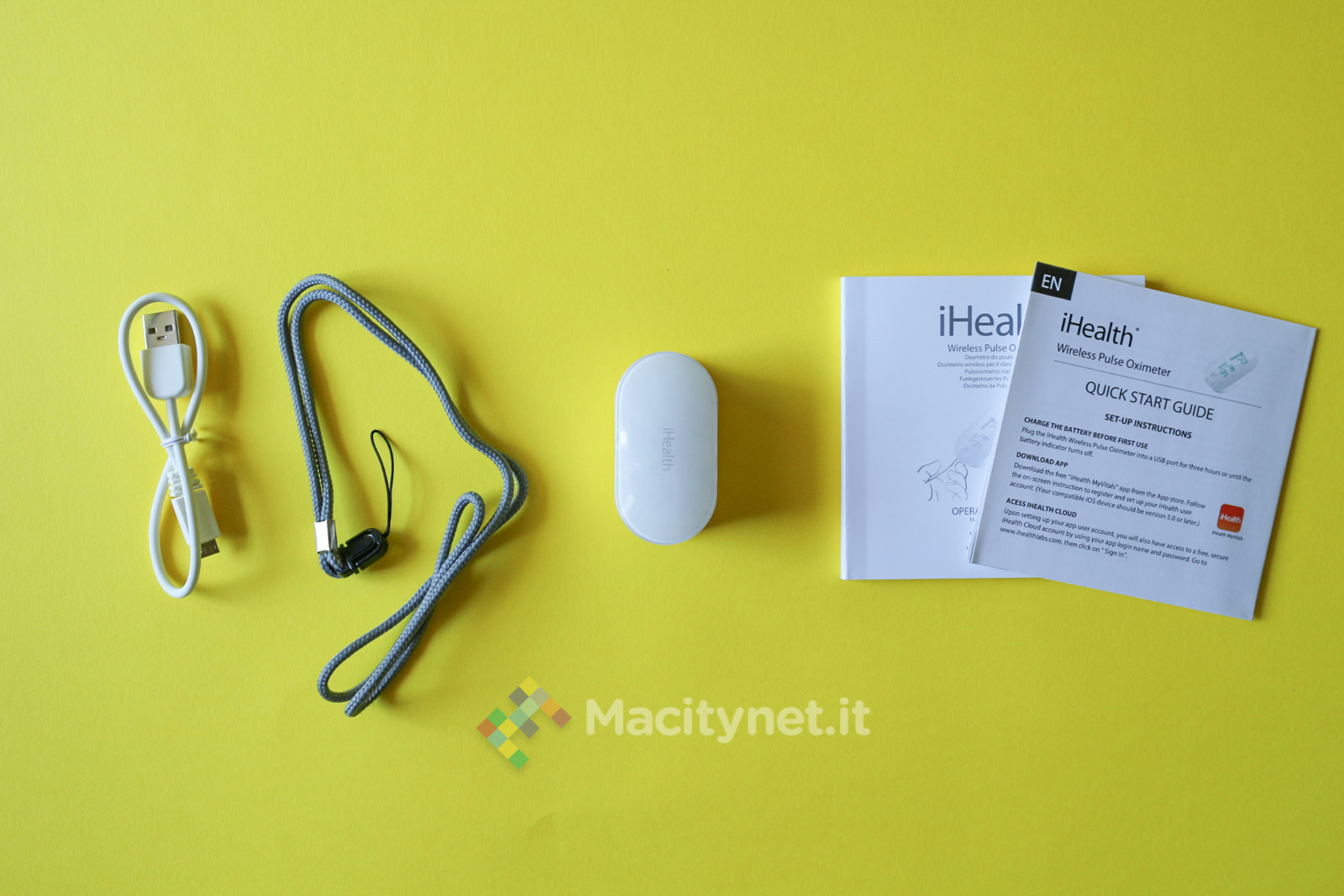 Nella confezione di vendita troviamo il pulsiossimetro, un laccio per appenderlo al collo, il cavo microUSB per la ricarica ed il manuale delle istruzioni. Come altri del genere, è formato da una sonda che effettua la misurazione e da un’unità che calcola e visualizza il risultato della misurazione. Nel caso specifico, si tratta di una “pinza” che viene applicata al dito dove da un lato, grazie ad uno schermo, viene visualizzata la misurazione su di un piccolo schermo LED. Il punto di forza di questo accessorio è che sincronizza i dati con un’app su iPhone e iPad, per tutta una serie di vantaggi di cui discuteremo più avanti.
