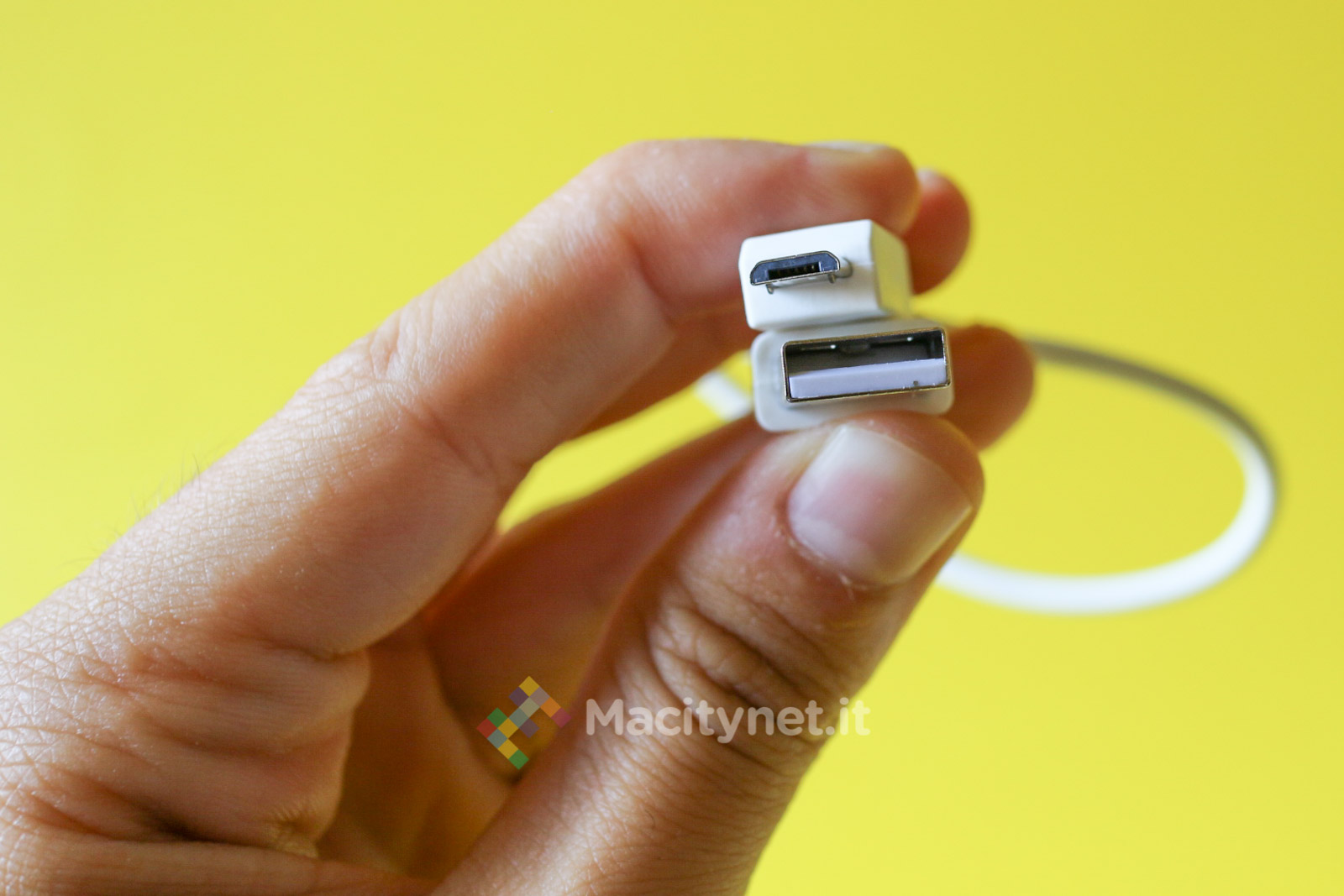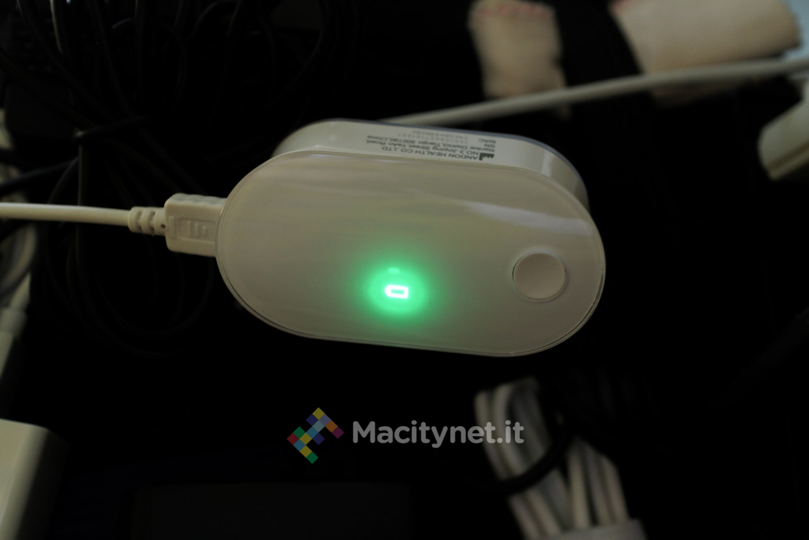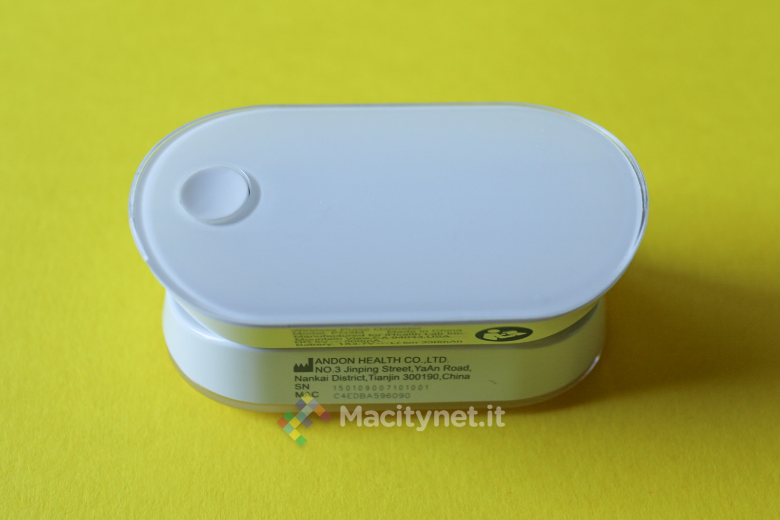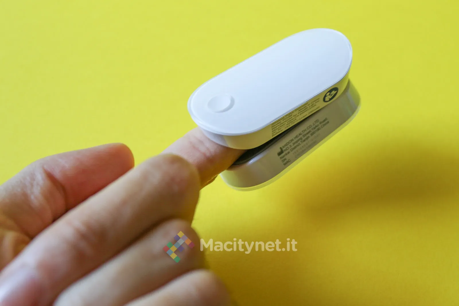 Il dispositivo è piccolo (6,5 x 3,3 x 2,5 centimetri) e, compreso il laccio, pesa appena 45 grammi. E’ completamente in plastica di ottima qualità, apparentemente solida e durevole nel tempo. Lo strato interno invece è in gomma, perfetta per evitare movimenti indesiderati del dito durante la misurazione. C’è un solo pulsante per l’accensione del pulsiossimetro ed un ingresso microUSB, sul retro, coperto da un tappo in gomma, per ricaricarlo quando la batteria da 500 mAh si scarica.