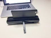 Abbiamo sperimentato l’altoparlante come supporto con un iPad Air 2 e in funzione “stand” è sicuramente stabile, grazie al braccetto che esce dal retro e, all’occorrenza, si ripiega all’interno del corpo dell’altoparlante. Purtroppo non è possibile regolare l’inclinazione che è abbastanza confortevole, ma potrebbe non essere adatta per tutte le situazioni o tutti i gusti.