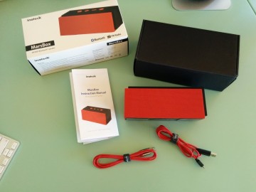 Il box di vendita dell’altoparlante Inateck Marsbox lascia già presagire che non si tratta di un altoparlante appartenente alla fascia più economica: la cassa è molto pesante e anche i cavi di ricarica, o jack da 3,5mm, mostrano una cura solitamente riservata a periferiche più costose. In se, l’altoparlante è paragonabile a un grosso mattoncino LEGO di colore rosso acceso, anche se il design complessivo risulta originale per via delle forme geometriche squadrate utilizzate: la cassa di colore rosso è, infatti, incastonata in un blocco nero più grande. Insomma, potrà piacere davvero tanto o, al contrario, risultare esteticamente troppo invasiva, si tratta di uno stile moderno ben fatto e davvero originale. Sebbene la colorazione sia davvero forte, risulta comunque piacevole alla vista in qualsiasi ambiente si collochi.