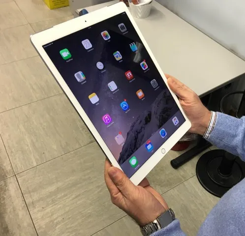 Quando iPad finisce in mano per la prima volta, togliendolo dalla scatola, ci sembrerà di essere diventati improvvisamente più piccoli, una sensazione che abbiamo percepito nettamente forse perchè abituati ad usare iPad fin dal primo giorno del suo lancio (quello americano arrivato mesi prima di quello italiano…). Il design e i controlli sono quelli a cui siamo abituati, ma tutto è più grande al punto da dare una sensazione bizzarra. Le mani che reggono il tablet si allargano, lo schermo emette luce diffondendola con un cono più vasto, per guardare lo schermo con lo stesso taglio che aveva in precedenza, dovremo tenerlo più distante dagli occhi. Tutto questo è unito ad una sensazione altrettanto bizzarra: l’iPad non pare essere più pesante dell’iPad Air 2 cui siamo abituati, anche se scientificamente parlando lo è e non certo in maniera irrilevante (720 grammi contro 430). Il merito è di un bilanciamento del peso pressochè perfetto: lo si regge senza sforzo con le due mani ai lati oppure con una mano al centro, appoggiando una parte del dorso sull’avambraccio. È ovviamente più difficile e sconsigliabile, metterlo in verticale e tenerlo con una mano sola come sarete certamente abituati a fare con l’iPad Air 2 o con l’iPad mini, ma non è impossibile e si ha anche la tentazione di farlo.