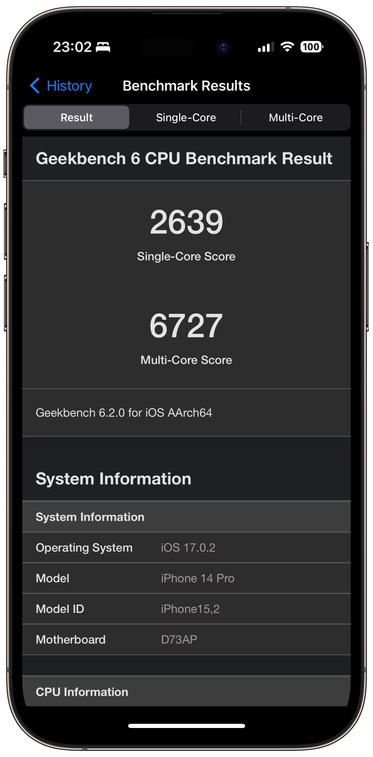 Non sappiamo perché secondo i siti che hanno recensito iPhone 15 e iPhone 14 Pro i due processori hanno prestazioni sostanzialmente equivalenti, mentre nel nostro caso ci sia una differenza in particolare (intorno al 10%) nel multicore. Forse siamo stati fortunati con la componente del nostro smartphone.