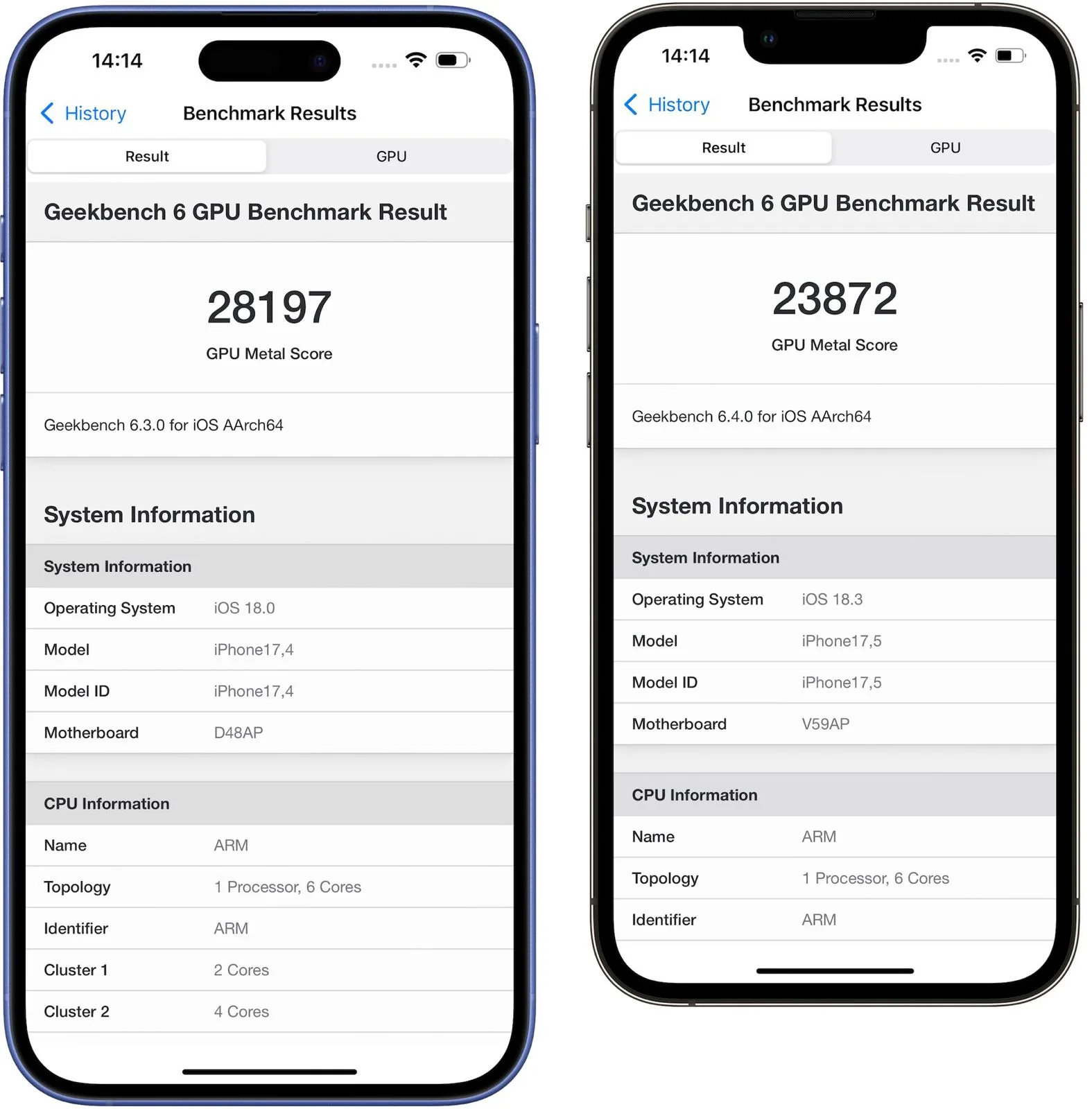 Quando il vecchio modello venne rilasciato, stupiva per per l’aspro contrasto tra l’aspetto obsoleto e il processore A15, il più moderno disponibile allora (Fiat 500 con il motore Tesla, titolammo allora). In iPhone 16e non c’è lo stesso contrasto tra design e CPU, ma il processore oggi come allora è (quasi) il più moderno che si potrebbe pensare: è l’A18 di iPhone 16.