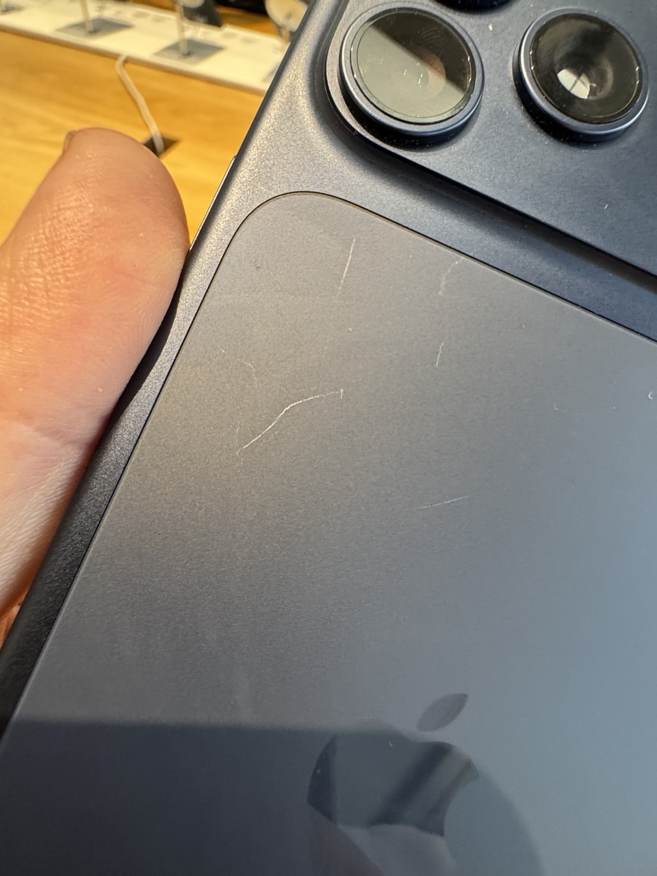 Anche noi, durante una nostra visita ad un Apple Store, abbiamo in effetti notato un fenomeno simile: righe ed incisioni, molto evidenti su alcuni iPhone 17 Pro di colore blu.
