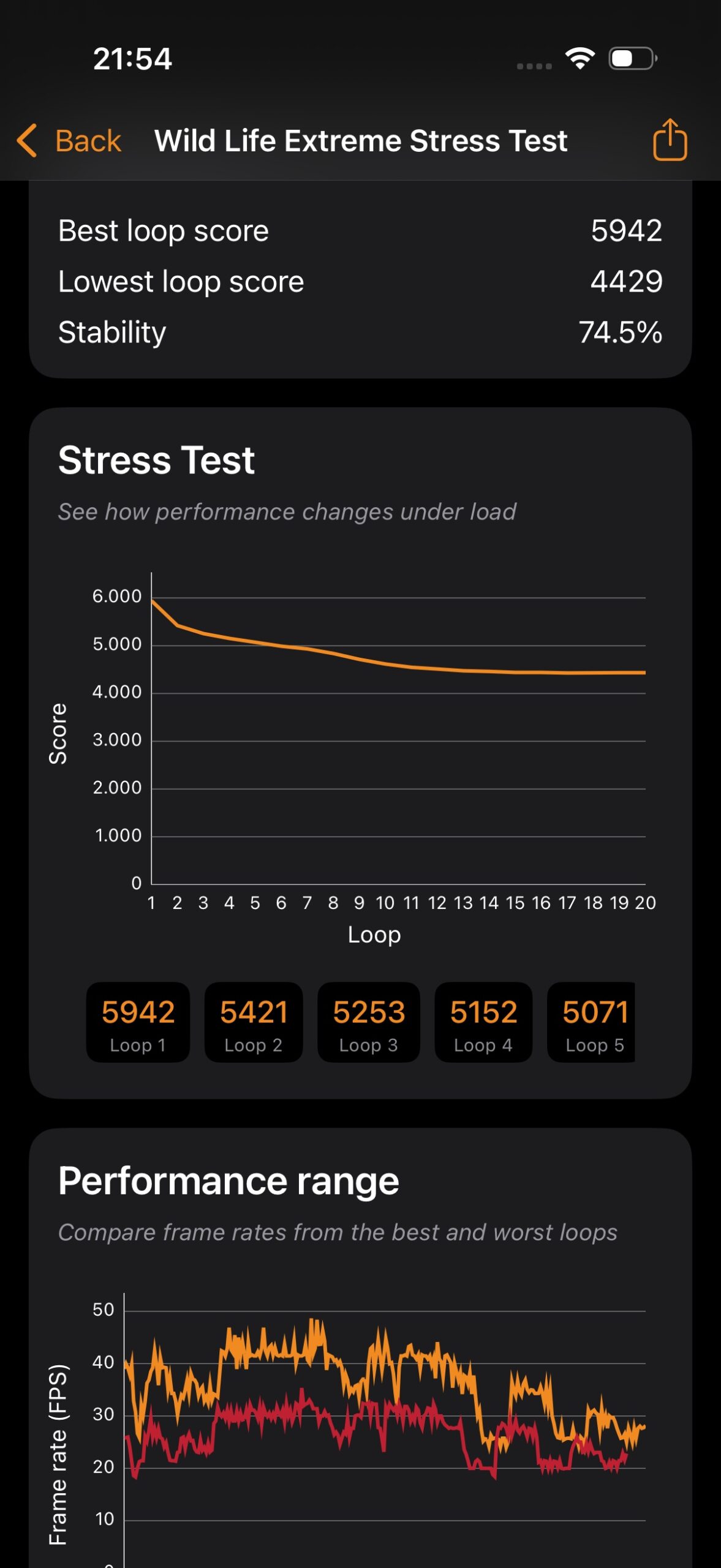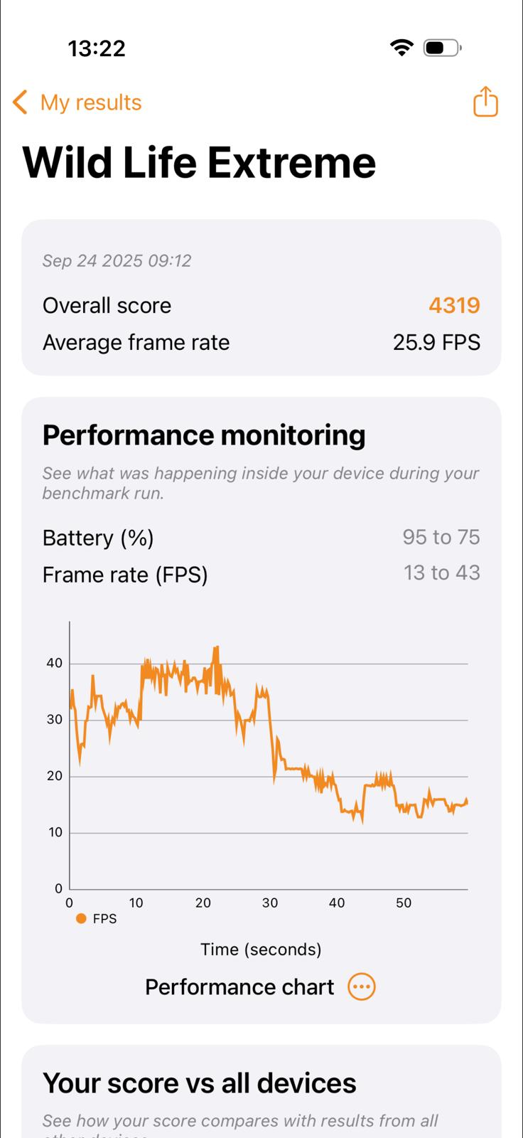 Ma l’aspetto più interessante  e ciò che più conta è la consistenza delle performance grafiche: sotto carichi prolungati, l’iPhone 17 Pro, come si nota dallo stress test con 3D Mark, ha una stabilità superiore sia a quella di iPhone 16 Pro che rispetto ad iPhone Air.