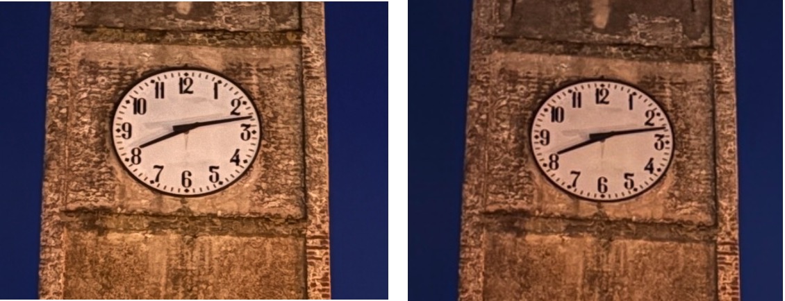 In notturna e in scarsa luce il compromesso si sente anche di più (vedere foto qui sopra): l’algoritmo Notte interviene con decisione, ma quando si chiama il crop crescono di molto rumore e perdita di microdettaglio.