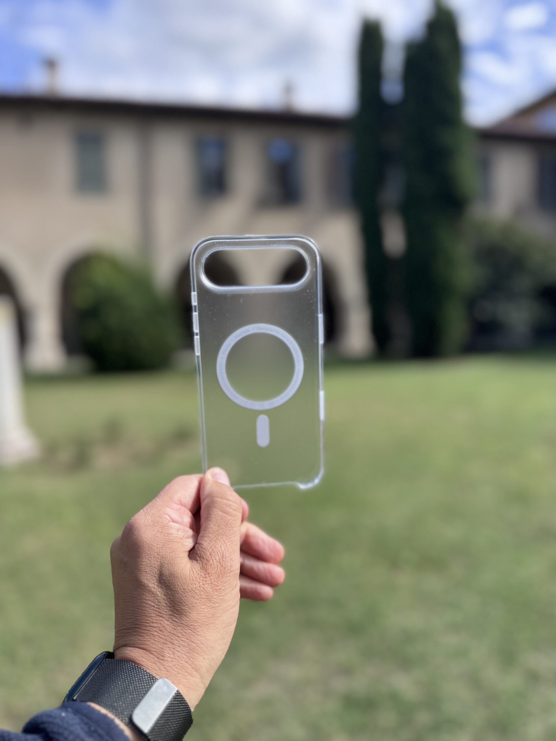 La custodia (qui leggermente rivista con un dorso opacizzato) la mettiamo da parte perché, pur essendo leggera e sottile, alla fine snatura parecchio l’idea di base di iPhone Air. In più, come sempre, è abbastanza scivolosa.