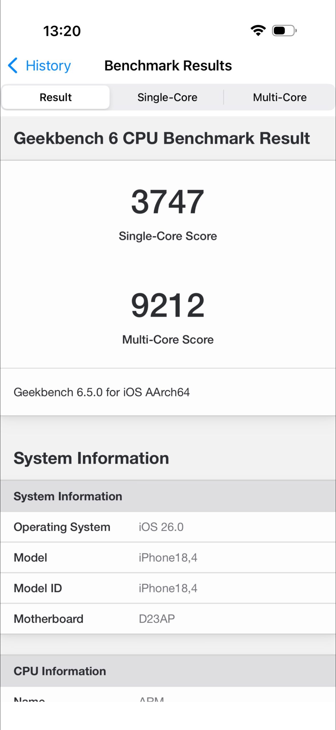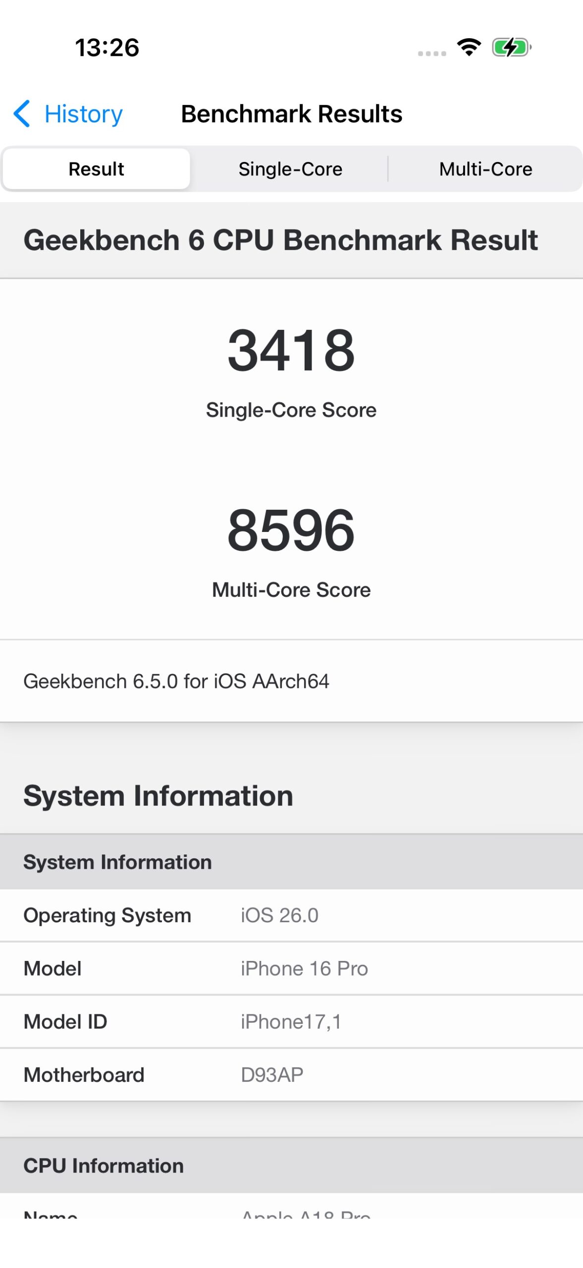 Un’idea su quanto sia veloce iPhone Air e in che modo la otteniamo dai benchmark che vedete pubblicati qui sotto. Da essi apprendiamo che il nuovo modello supera in termini di puri muscoli un iPhone 16 Pro che fino allo scorso anno era di gran lunga il più potente iPhone, anzi il più veloce smartphone, sul mercato. Oggi quel modello perde il confronto su tutti i fronti se si considerano i numeri forniti da GeekBench 6.