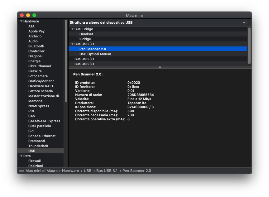La prima modalità di scansione sfrutta l’applicazione IRISPen: dalla finestra visualizzata si seleziona l’icona della penna (significa che le acquisizioni vengono effettuate all’interno dell’applicazione); per acquisire direttamente in un’altra applicazione (opzione a nostro avviso molto più comoda) basta fare clic sull’icona del foglio nell’applicazione IRISPen, aprire l’applicazione in cui si desiderano effettuare le scansioni e fare clic con il mouse all’interno di essa. Il testo o le immagini verranno inseriti in corrispondenza della posizione del cursore al momento dell’acquisizione. Su macOS 10.14 è necessario consentire all’applicazione “IIRSpen 7” di controllare il computer (basta selezionare il software nella sezione “Privacy” in “Sicurezza e privacy” nella Preferenze di Sistema). Al termine dell’operazione di lettura, per spegnere lo scanner basta un triplo click sul beccuccio.