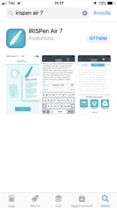 Oltre che con Mac e PC, lo scanner portatile in questione funziona anche da smartphone e tabllet. Per dispositivi iOS (iPhone e iPad) basta scaricare l’app gratuita “IrisPen Air”, avviarla e seguire le istruzioni per l’abbinamento (premere la punta per tre secondi e scegliere “Connetti” sull’app per selezionare lo scanner); anche l’app chiede in che modo effettuiamo l’acquisizione (mano destra o mano sinistra), la lingua di input e se desideriamo effettuare il collegamento con il cloud. A questo punto il funzionamento è lo stesso già visto sul computer: basta tenere la penna leggermente inclinata premendo delicatamente sulla superficie fino e scansionare i testi. Un suono nell’app per iOS avvisa quando per qualche motivo l’acquisizione non riesce (ci è capitato, ad esempio, nel caso di un testo bianco su sfondo azzurro con texture nere).
