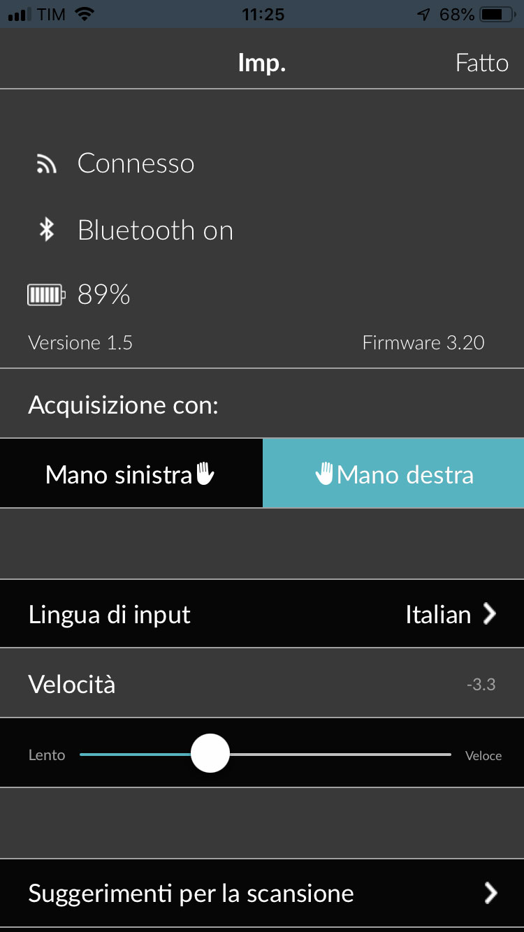 Il nostro Mac ha già il Bluetooth di serie e dunque non è stato necessario collegare il dongle USB fornito nella confezione. Per la prima configurazione si avvia il software IRISPen AIr 7, si tiene premuto per tre secondi il beccuccio dello scanner per accenderlo e si effettua l’abbinamento con il computer. Parte un tour guidato che spiega il funzionamento, successivamente l’applicazione ci chiede se siamo mancini o destrorsi, la lingua preferita per l’interfaccia e poi di fare una verifica provando a scansionare un testo. Terminato il test, è possibile sfruttare la funzionalità scansione da qualsiasi applicazione (es. Pages o Word): il contenuto scansionato è collocato nella posizione del cursore del testo.