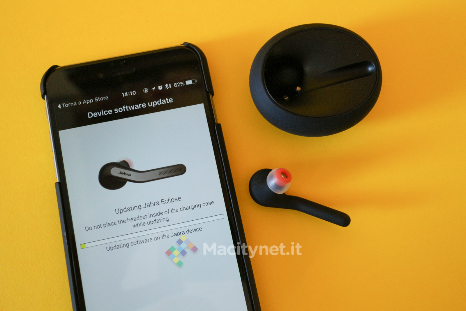 L’applicazione Jabra Assist, disponibile gratuitamente su App Store, offre anche una serie di opzioni utili per l’auricolare. E’ ad esempio possibile attivare l’interruttore per la voce Automatic volume che sostanzialmente aggiusta il livello in base ai rumori ambientali, abbassandolo così adeguatamente quando ci si trova in una stanza silenziosa ed alzandolo invece quando si usa l’auricolare all’aperto o in mezzo al traffico. Il software permette anche di disattivare la voce guida, scegliere il tipo di gesto per la risposta di una telefonata tra singolo e doppio tocco, o ancora scegliere se lasciare una qualità audio normale, puntare sulla chiarezza (ottima per le telefonate) o piuttosto enfatizzare i bassi, opzione interessante se si usa l’auricolare anche per ascoltare occasionalmente musica.