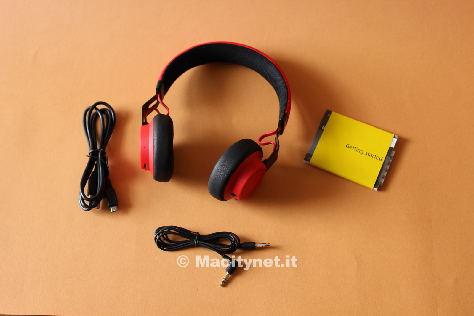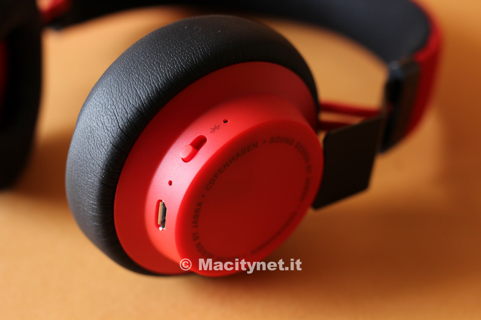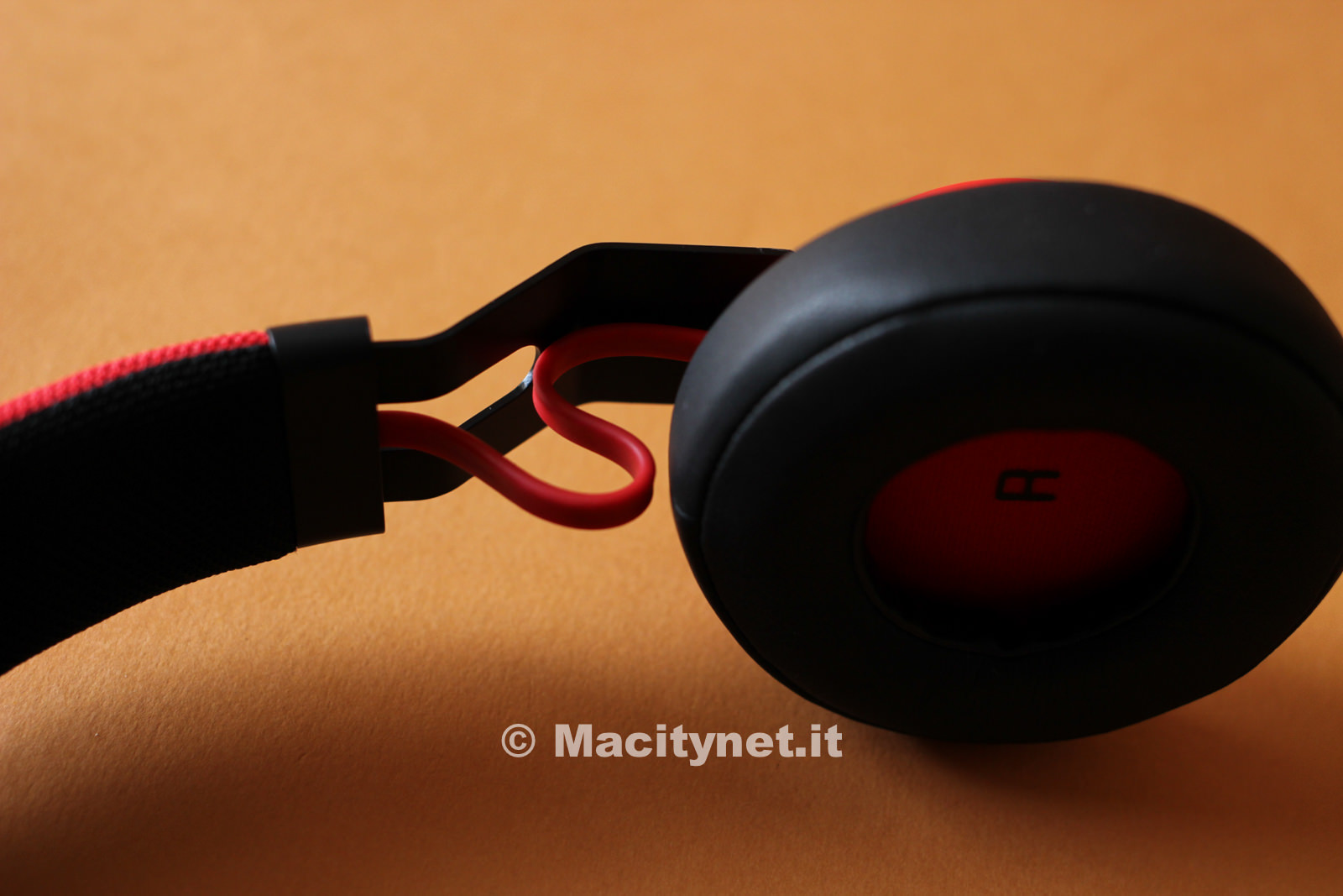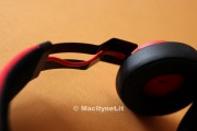 Le cuffie sono davvero leggere (160 grammi) e lo si percepisce fin dal primo momento che le si prende in mano. I padiglioni sono realizzati in plastica opaca di ottima qualità ed internamente rivestiti da morbidissima pelle; l’archetto è imbottito e distinto da un tessuto in doppio colore (nel caso delle nostre Jabra nero all’interno e rosso all’esterno) resistente alla polvere – dice l’azienda produttrice – e confermato poi, come vedremo più avanti, dai nostri test. I padiglioni sono collegati all’archetto da due braccetti in acciaio inossidabile di colore nero che spariscono all’interno dell’archetto e consentono di adattare le cuffie praticamente a qualsiasi testa. Sono solidi e piegati ‘a fulmine’, una piccola particolarità che, affiancata al design minimale, le rende davvero accattivanti, specialmente per quanto riguarda il modello rosso dei nostri test.
