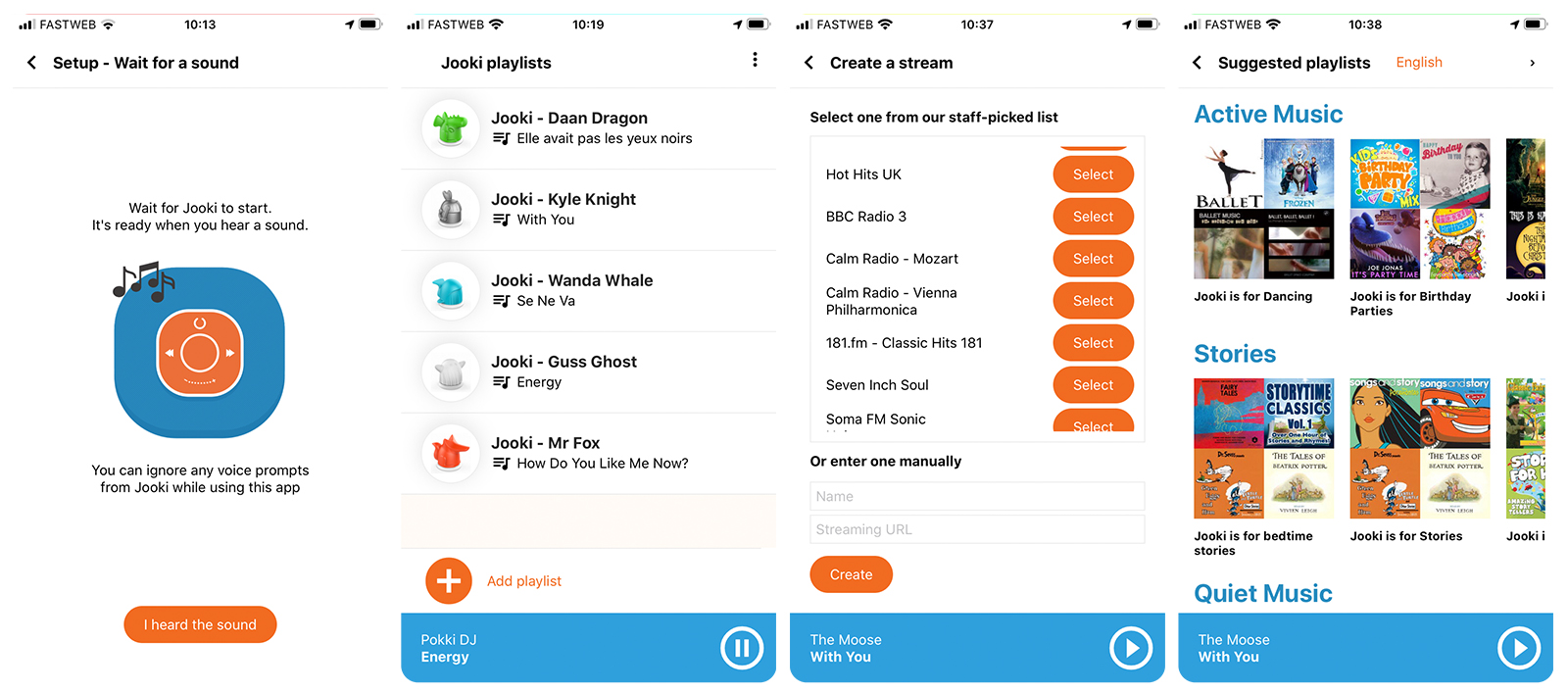 All’interno dell’App possibile creare delle playlist, attingendo da diverse sorgenti: possiamo collegare una playlist di Jooki ad una di Spotify (anche free) o Dazzler, oppure scegliere una web-radio tra quelle elencate oppure indicare una traccia in streaming personale, così come caricare tracce personali dalla memoria MicroSD (nella confezione è inclusa una MicroSD da 4 GB).