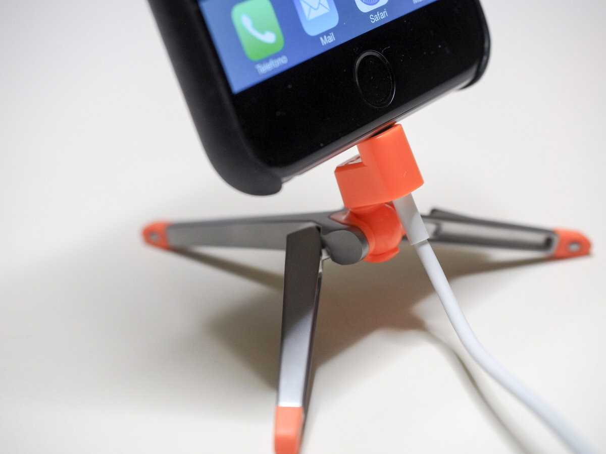 La versione che abbiamo ricevuto in prova include anche l’adattatore per il cavo Lightning. In pratica è possibile sostenere iPhone ed allo stesso tempo ricaricarlo con il cavo di alimentazione. Il limite di questo cavalletto risiede infatti proprio nell’impossibilità, senza adattatore, di utilizzarlo per stabilizzare iPhone e magari ricaricarlo, funzione che si rivela necessaria quando si utilizza il telefono ad esempio per registrare video in Time Lapse.