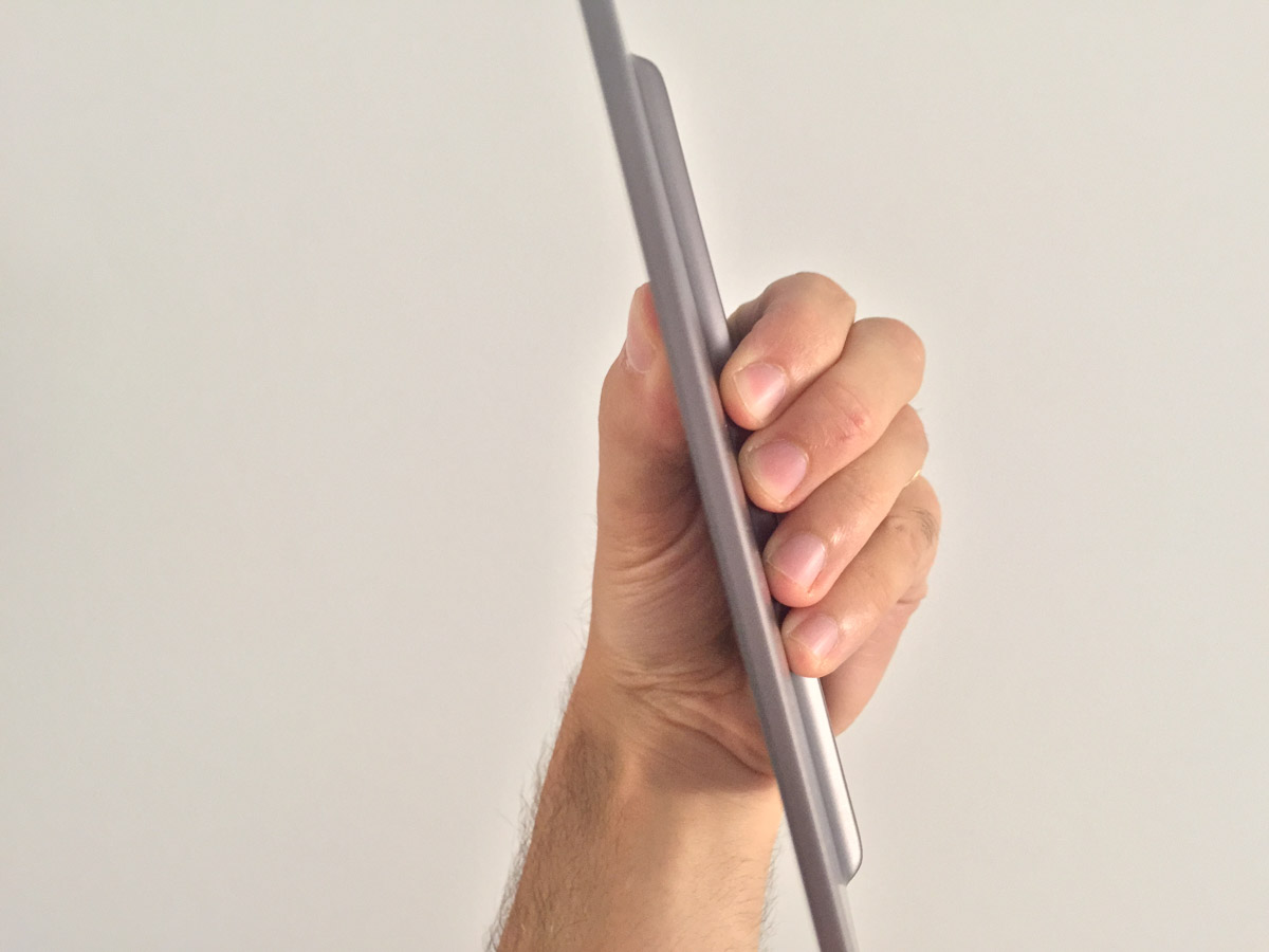 Differentemente dagli altri presenta infatti una particolare impugnatura sul retro che rende ancora più naturale il posizionamento delle dita e ne agevolano la tenuta che, in sua assenza, sarebbe potuta essere poco sicura per via della ben nota scivolosità dell’alluminio. La curvatura sembra fatta apposta per i polpastrelli e i pulsanti VoltaPagina, che troviamo soltanto sulla serie Oasis, sono giusti sia nella forma che nel posizionamento, sempre raggiungibili dal pollice.