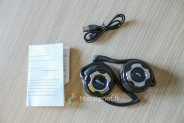Fuori dalla scatola, sono accompagnate soltanto da un cavo miniUSB per la ricarica (avremmo preferito trovare il microUSB per la sua maggiore diffusione) e da un piccolo manuale d’uso. Si presentano piegate ma, con due soli movimenti, si aprono e sono pronte all’uso. Il sistema di chiusura infatti è decisamente intuitivo, più di altri adottati in prodotti simili: non bisogna far altro che flettere di 90 gradi ciascuna asta – alla quale sono collegati i padiglioni – lungo la giuntura che le tiene fissate all’archetto per la nuca attraverso una piccola vite a croce. Ciascuna poi può essere inclinata di circa 45 gradi per adattarsi meglio alla testa dell’utente che le indossa.