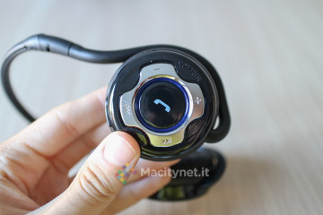Tutti i controlli si trovano sul padiglione destro: un grosso tasto centrale di forma circolare, contrassegnato dal simbolo di una cornetta, permette di accettare e riagganciare (singolo click) oppure rifiutare (tenere premuto per 2 secondi) una telefonata in entrata, oltre ad avviare e mettere in pausa la riproduzione musicale. Altri due pulsanti, sulla facciata superiore, contrassegnati dai simboli + e -, permettono di regolare il volume, mentre dal lato opposto, FWD e BWD, sono utili rispettivamente per saltare alla traccia successiva o precedente. Sul bordo inferiore troviamo invece l’ingresso miniUSB, ben protetto da un tappo in gomma, utile per ricaricare le cuffie e mantenere protetta la porta da sudore e polvere quando non è in uso.