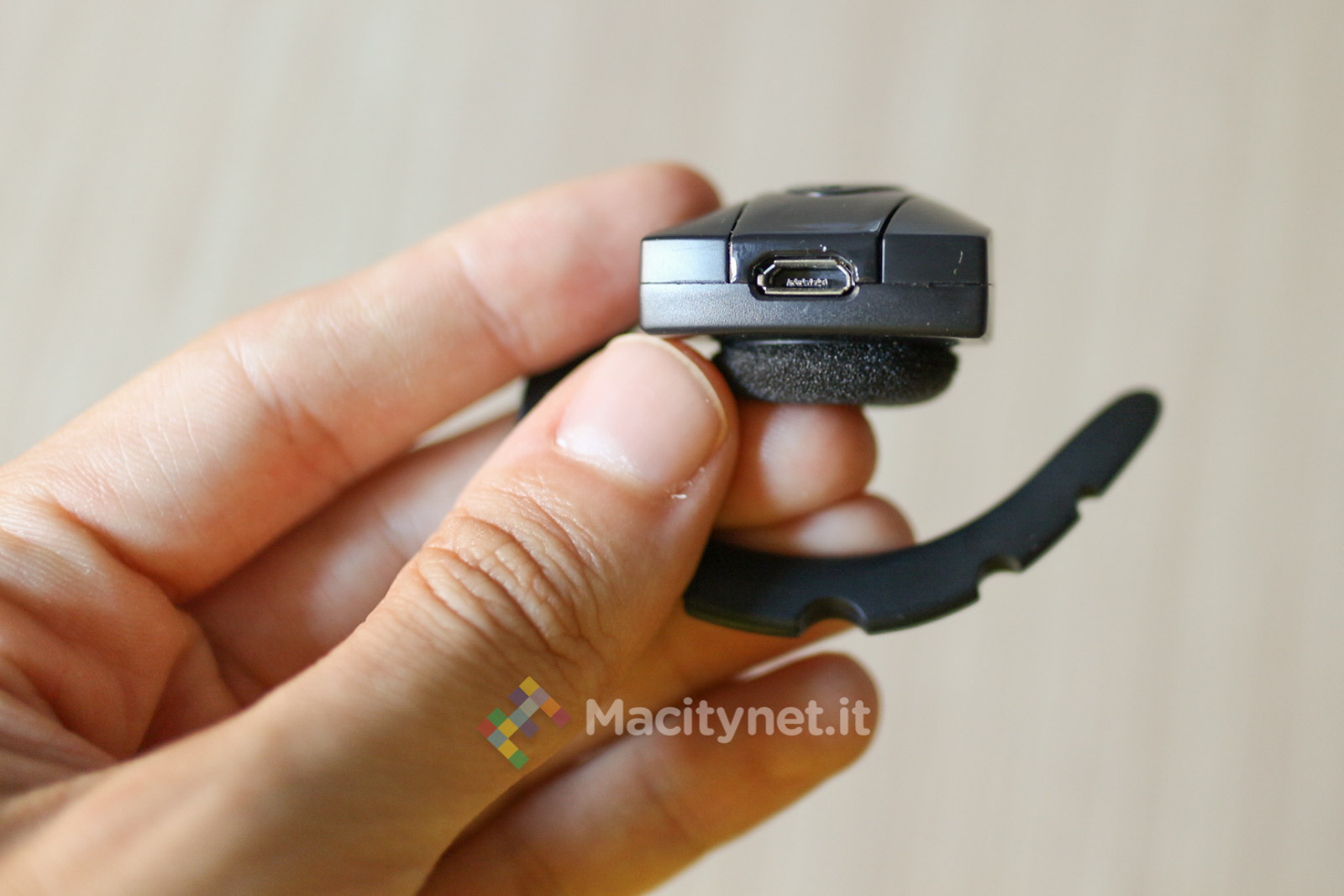 Tutta la struttura è in plastica di buona qualità, eccezion fatta per l’archetto che sostiene l’auricolare sull’orecchio, in gomma molto flessibile. Il punto di forza dell’auricolare sta nell’asta per il microfono, molto più lunga di altri prodotti simili: in questo modo il foro è più vicino alla bocca, il tutto si traduce in una migliore comunicazione con l’interlocutore, soprattutto se chi lo indossa si trova in ambienti molto affollati o rumorosi. In base alle nostre prove chi stava dall’altra parte percepiva la nostra voce “forte e chiara” in tutte le occasioni, tra cui le più comuni come una passeggiata lungo un marciapiede che costeggiava una strada abbastanza affollata e l’attesa in stazione dove, anche l’arrivo del treno, non ha influito negativamente sulla qualità della chiamata. Di fatto il microfono lavora molto bene.