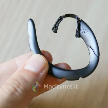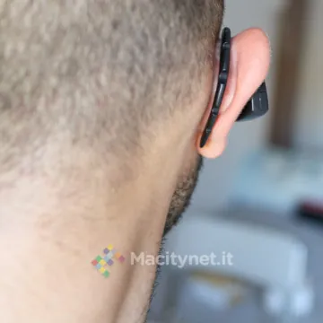 La batteria garantisce circa 4 ore di utilizzo in conversazione, meno delle 5-6 ore dichiarate dal produttore. La ricarica avviene invece in circa 3 ore, più delle 2 ore riportate nella scheda prodotto. L’unico appunto da fare riguarda l’uso per chi, come chi scrive, ha le orecchie grandi. Abbiamo infatti notato una importante instabilità dell’archetto che tende a tenere l’auricolare un po’ troppo mobile, facendolo addirittura barcollare verso l’esterno se si appende il capo dal lato dell’auricolare. Lo abbiamo fatto provare ad una nostra amica che ha le orecchie più piccole, in quel caso l’auricolare si stabilizza in maniera migliore senza mostrare alcun cedimento anche con bruschi movimenti del capo. Probabilmente se ci fosse stato un auricolare in-ear il problema sarebbe stato facilmente raggirato: tuttavia il punto di forza dell’auricolare sta proprio nella forma piatta e schiacciata dell’auricolare che non si infila nell’orecchio, bensì si appoggia soltanto sopra. Si tratta di una scelta che punta a renderlo confortevole durante un utilizzo di più ore consecutive.