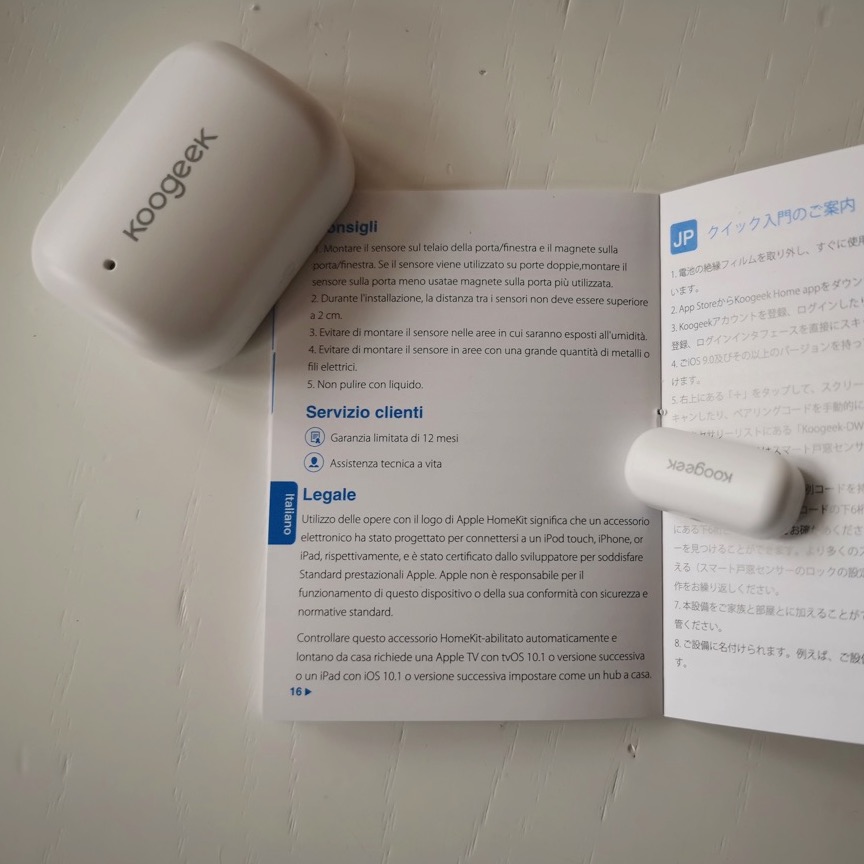In questo sensore il Bluetooth è del tipo 5.0 e dovrebbe garantire una maggiore portata ma Koogeek consiglia di rimanere nei canonici 10 metri di distanza: tenete conto di questa misura se volete accedere al sensore dalla vostra Apple TV o Homepod quando non siete in casa perché altrimenti lo stato del sensore non potrà essere “visto” dall’esterno.