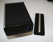 LaCie produce da tempo svariati dispositivi con connessione Thunderbolt e Thunderbolt 2. Il Little Big Disk che abbiamo avuto modo di provare (1249 euro su Apple Store) è l’ultima variante delle unità di storage portatili ad alte prestazioni. Aperta la confezione, all’interno di questa troviamo: l’alimentatore, quattro tipologie di cavi di alimentazione (inclusa la spina italiana), un cavo Thunderbot da 1 m, una basetta di alluminio che permette di tenere meglio in piedi il disco in verticale (bisogna farla scorrere nello slot situato nella parte inferiore dell’unità) e una chiave a brugola per avvitare la base al disco.
