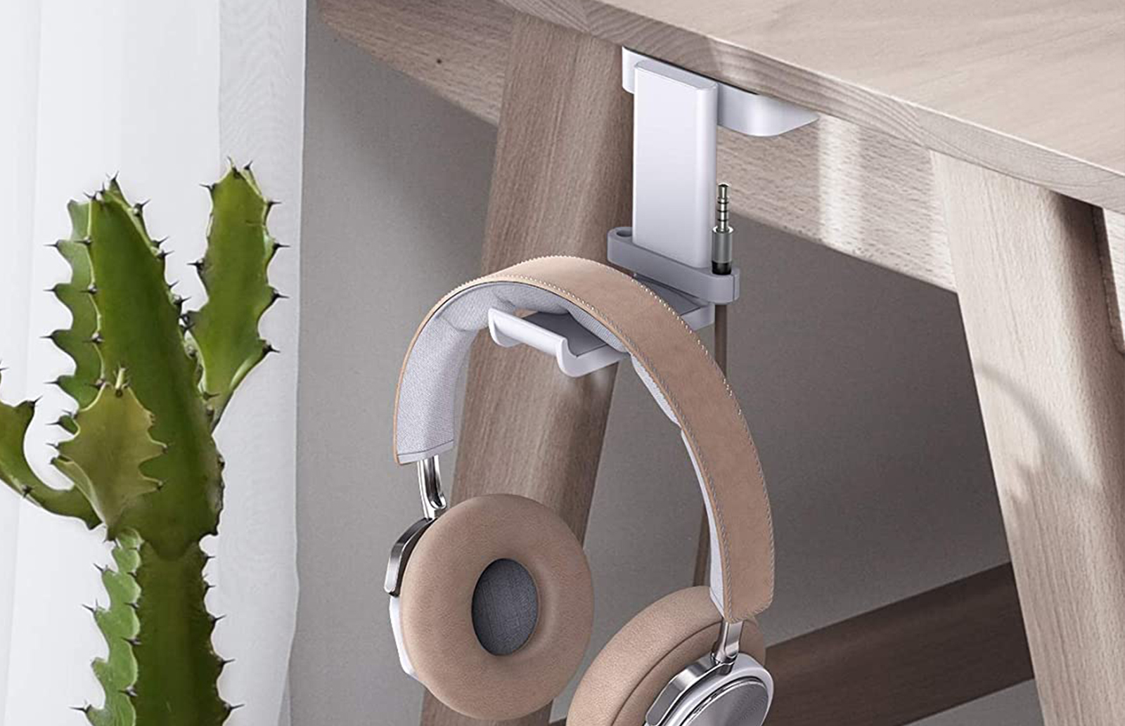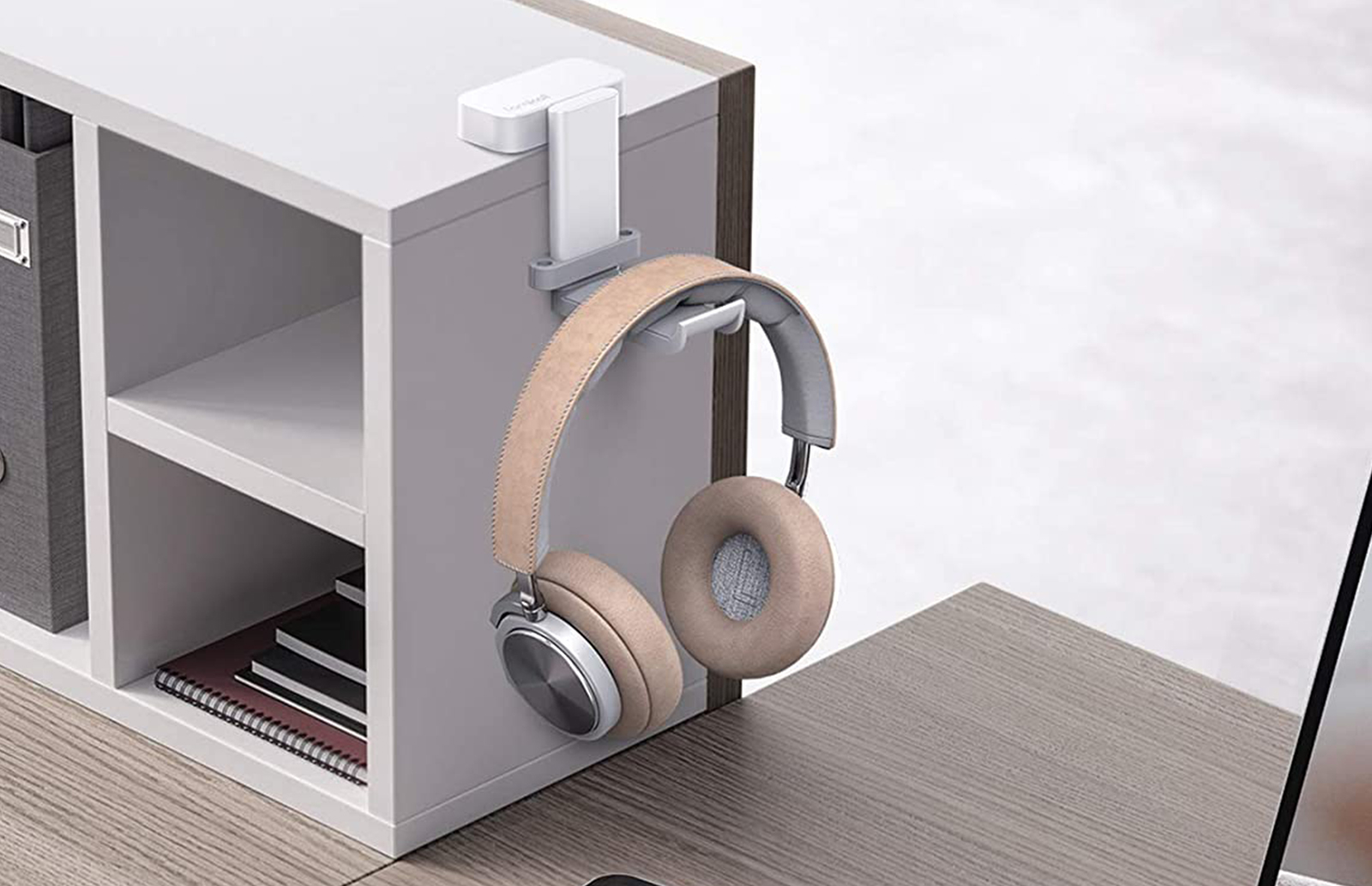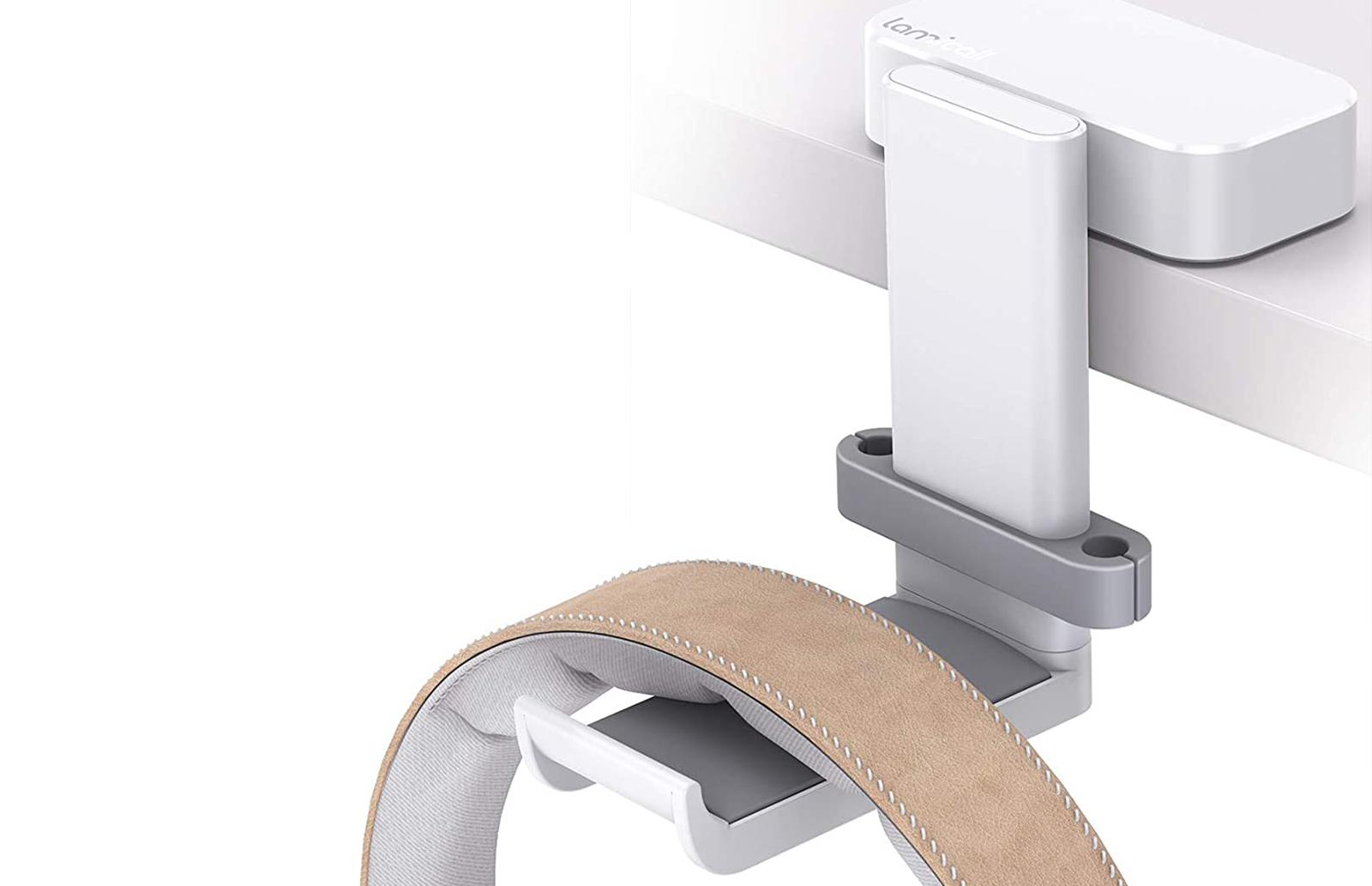 Ultimamente abbiamo avuto la fortuna di provare diverse cuffie, che con lo smart working ormai diventato regola di lavoro tendevano ad occupare diverso spazio sopra la scrivania. L’aiuto insperato è arrivato da Lamicall Supporto per Cuffie DH01, un gancio adesivo che usa una mjensola oppure la parte laterale o inferiore della scrivania per sostenere le cuffie quando on in uso.