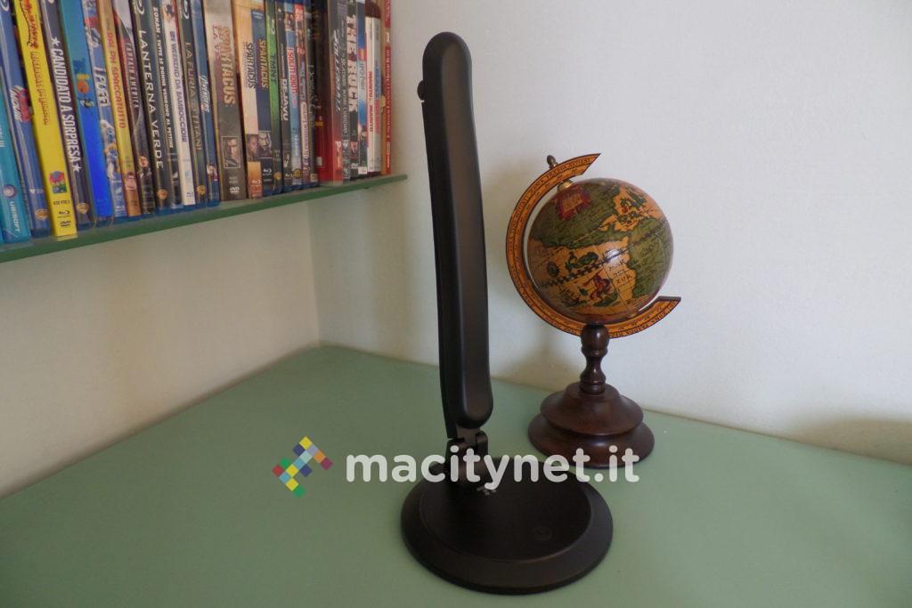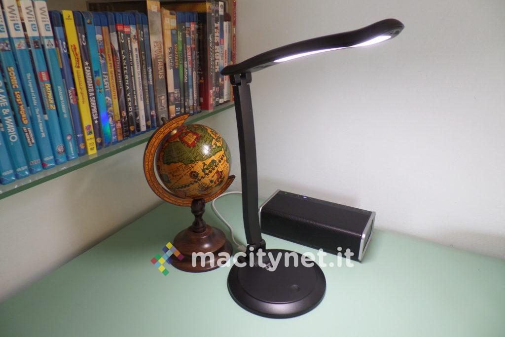 Insomma, si tratta di una lampada davvero semplice e basilare, che non propone differenti tonalità di luce, né timer per lo spegnimento automatico o altre funzionalità avanzate tipiche di altri esemplari più costosi. Il fascio di luce è soltanto con tempertura bianca, e può essere regolata solo nell’intensità, con un range valido, anche se al massimo non risulta forte come su modelli ben più costosi. La luce non è particolarmente accecante, ma illumina senza alcun problema una stanza di medio/piccole dimensioni, con un fascio uniforme e costante che non stanca gli occhi e non abbaglia. Da accesa, la lampada non presenta alcun fastidioso sfarfallio, così da poter essere utilizzata per diverse ore senza infastidire, o appesantire la vista.