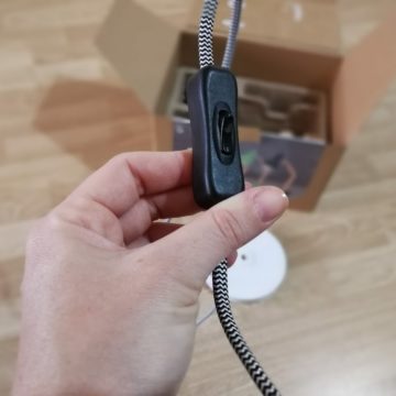 Il braccio intermedio non è regolabile, mentre la testa della lampada, naturalmente, può essere angolata a piacimento, così da indirizzare al meglio il fascio di luce. Grazie all’ampio metallo che avvolte la lampadina, la luce viene irradiata in modo corretto, tendenzialmente verso il basso, senza infastidire la vista, che difficilmente si incrocerà in modo diretto con il LED. Davvero particolare anche la scelta di un robusto filo in nylon, che attraversa il legno tramite alcuni fori appositamente presenti sul braccio e che conferisce un ulteriore tocco di modernità.