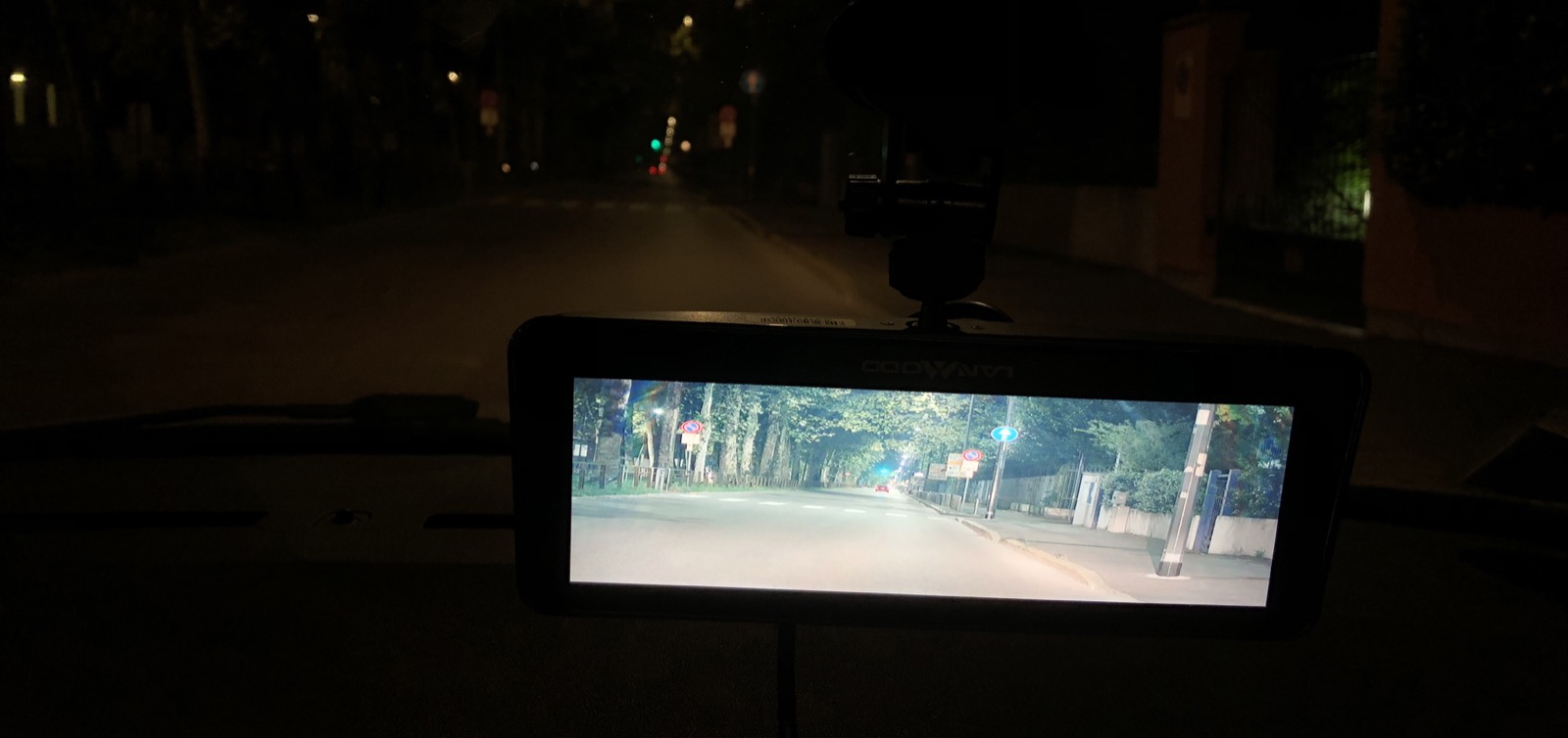 Una volta collegato alla presa e attivato, si accende e sostanzialmente funziona. Non serve toccare nulla, non serve connetterlo allo smartphone o scaricare nessuna App, il visore vi mostra quello che vede la telecamera posteriore (tipicamente la strada) in modo migliore.