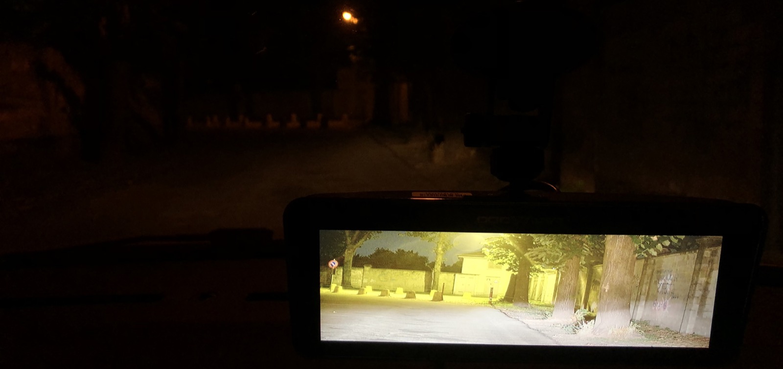 Nell’immagine qui sotto, ad esempio, la strada che vedete era completamente al buio (senza lampioni) e l’auto aveva i fari spenti (eravamo fermi, niente paura), e nonostante il rumore presente nell’immagine, Lanmodo Vast 1080P Full Color Night Vision Camera ha saputo restituire il tutto in modo quasi magico.